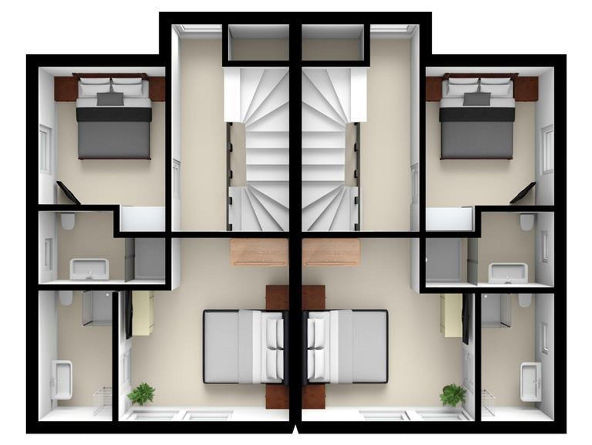 2 Schlafzimmer für 4 Personen mit jeweils eigenem WC/Badezimmer im OG. Die Wohnzimmercouch ist ebenfalls ein Doppelbett für weitere 2 Personen.