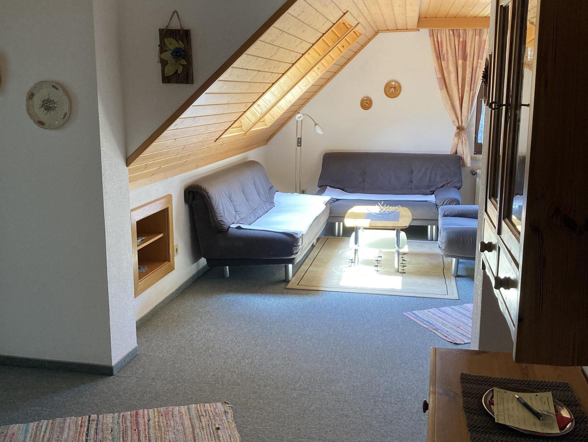 Eine gemütliche Ferienwohnung (2-4 Pers), Gesamtgrösse ca. 70 m2, geräumiger Wohnraum, zwei Schlafzimmer( bei Buchung 2 P- 1 Schlafzimmer), Dusche/WC, gemütliche Loggia, Küche ist komplett eingerichtet ( E-Herd mit vier Kochplatten, Kühlschrank, Kaffeemaschine, Geschirrspüler, Geschirr....) Sat-TV. Bett- und Tischwäsche wird einmalig beigestellt.