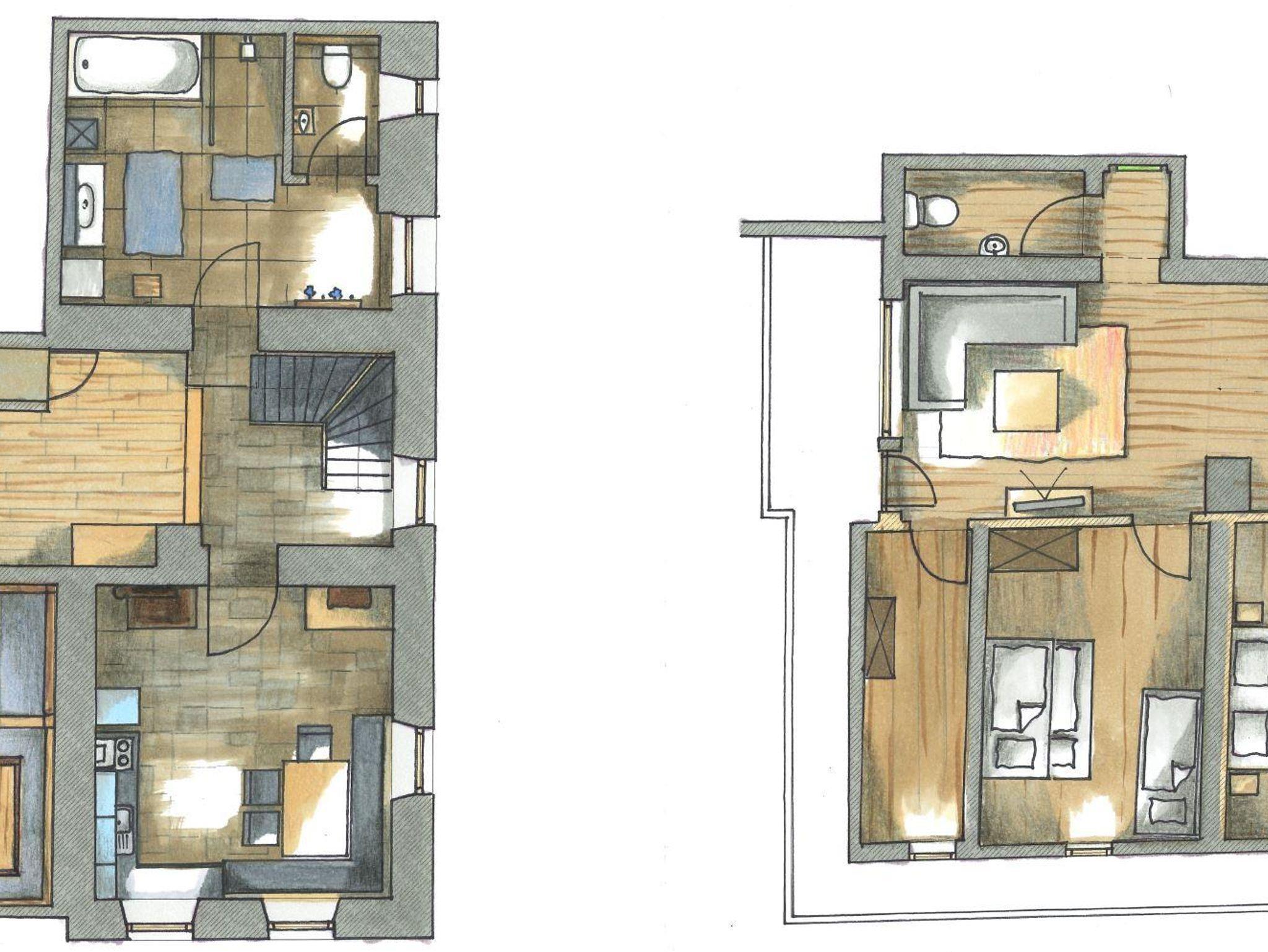 Gemütliches Ferienhaus mit komplett ausgestatteter Küche inkl. Holzherd. Weiters eine originale/rustikale Stube, 2 WC´s und großem Bad mit Badewanne und Dusche. Das Bauernhaus verfügt über 2 Schlafzimmer… Zimmer 1 mit einem klassischen Doppelbett, sowie Zimmer 2 mit 1x Einzelbett und Stockbett (Einzelbett und Doppelbett (140cm breit) in denen die uralte Holzvertäfelung sanfte Wärme vermittelt. In einer geräumigen Lounge befindet sich u.a. eine Couch mit Fernseher und lädt zum Entspannen ein.