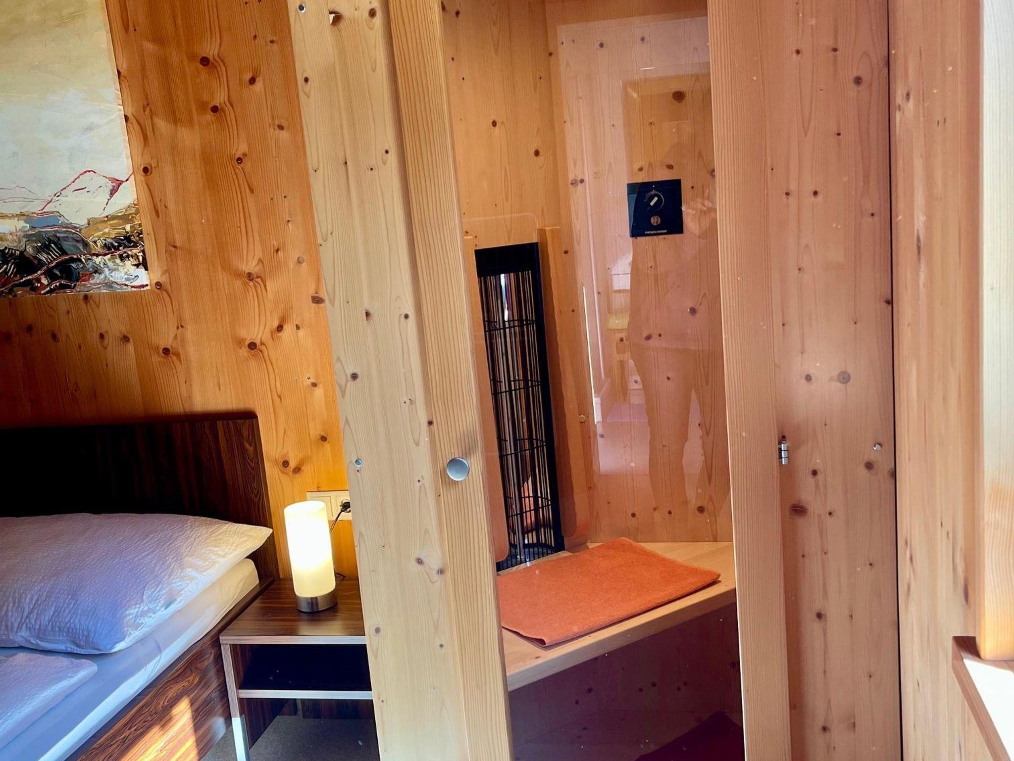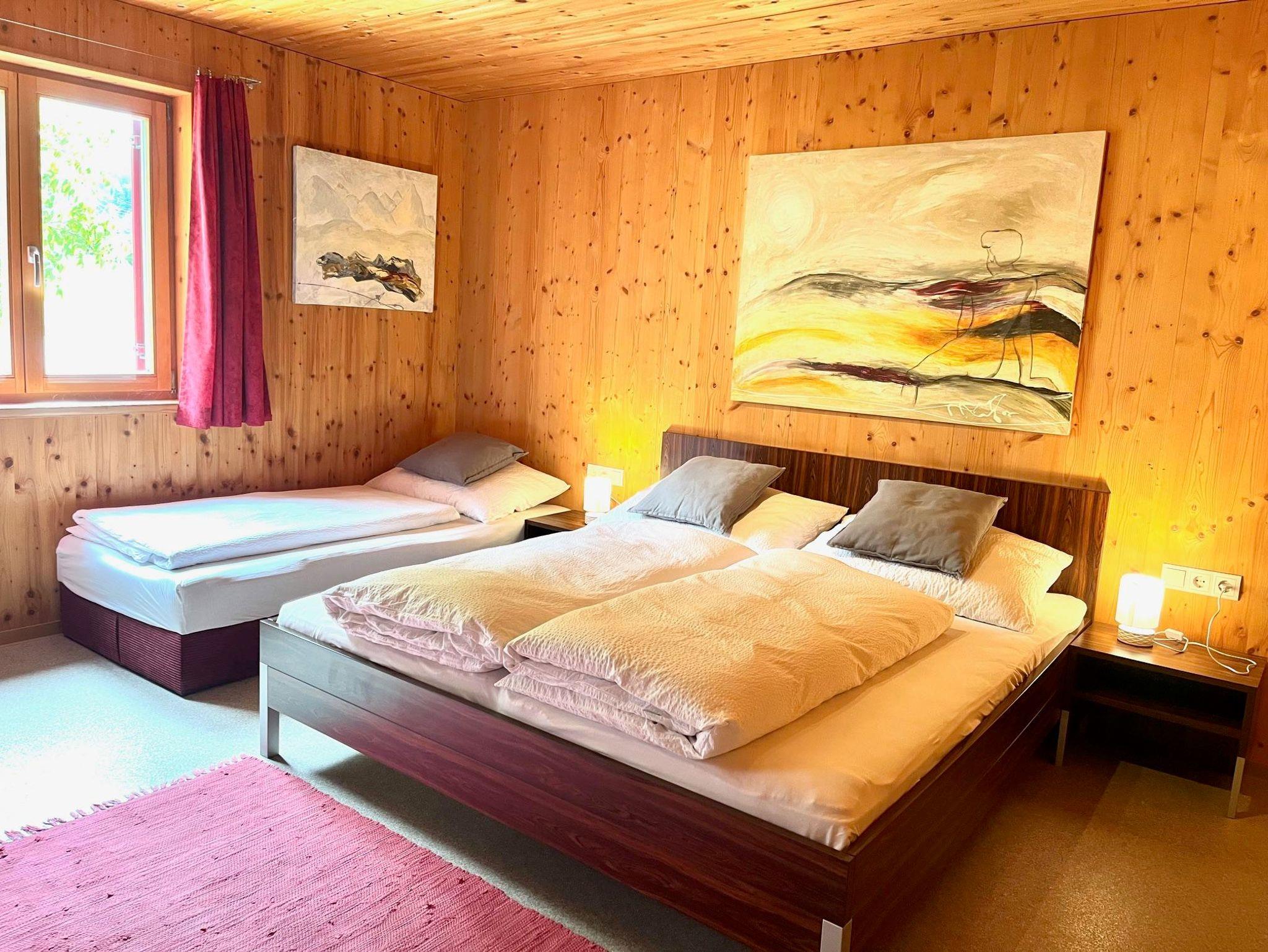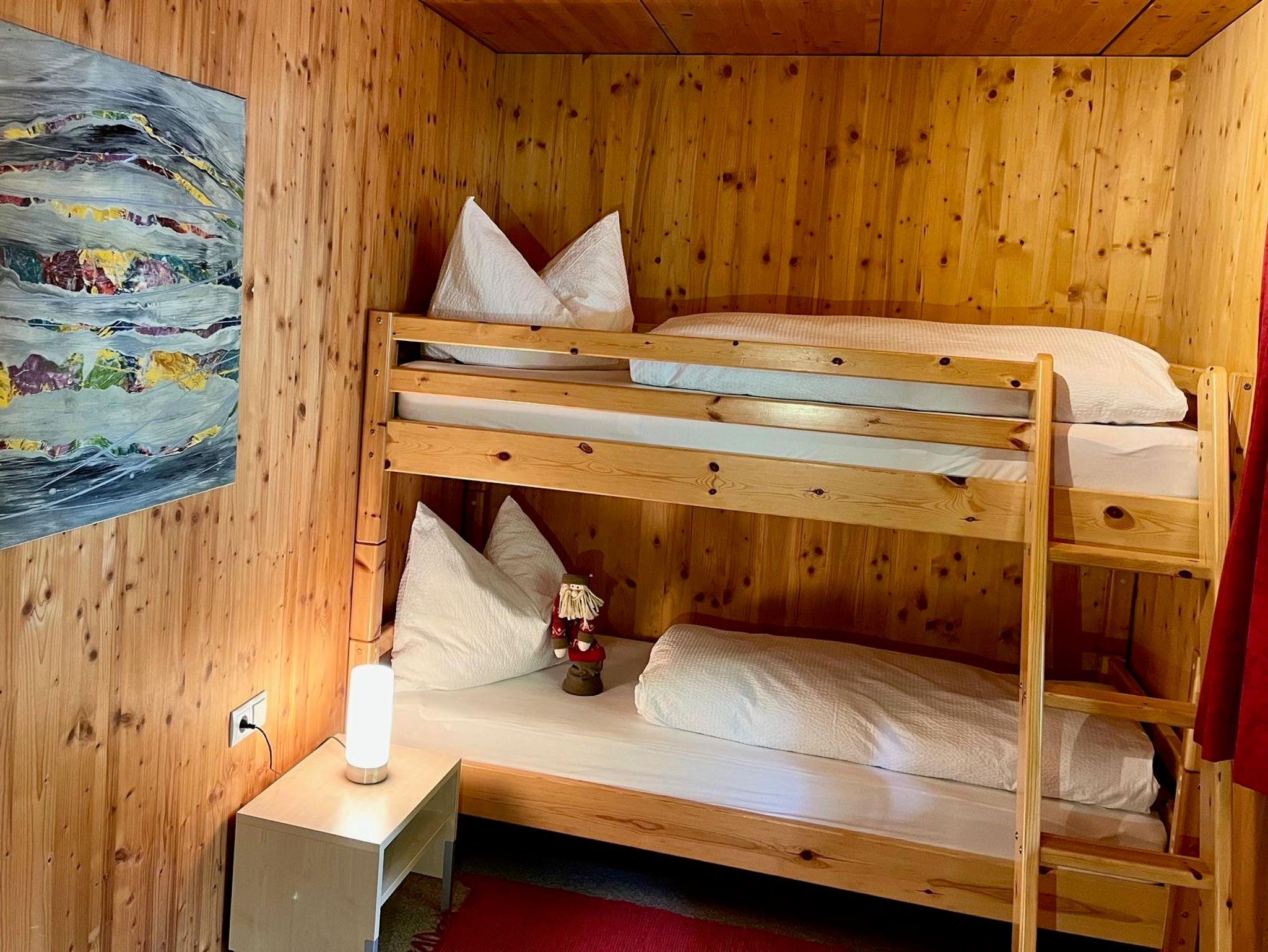 Genießen Sie einen guten Bergschlaf im einem Doppelzimmer mit Infrarotsauna, sowie einem Doppelzimmer mit Zusatzbett. Die großzügige Wohnküche steht für gemeinsame Essen und gemütliche Familienzeit. Zusätzlich stehen zwei Duschen mit WC zur Verfügung.