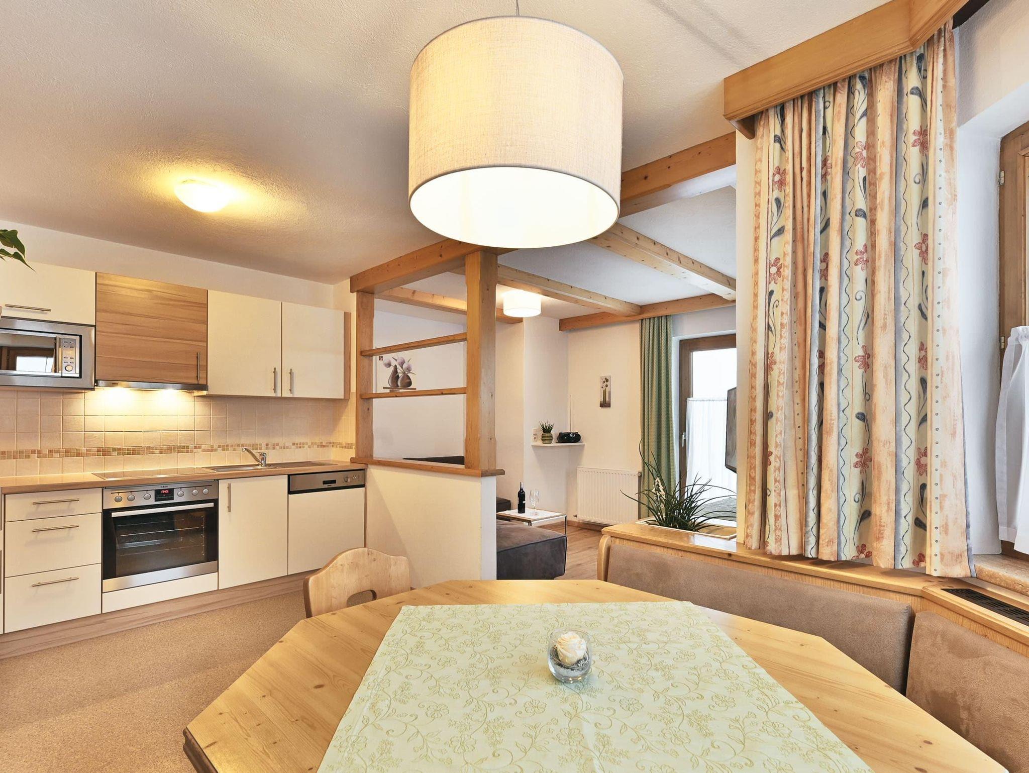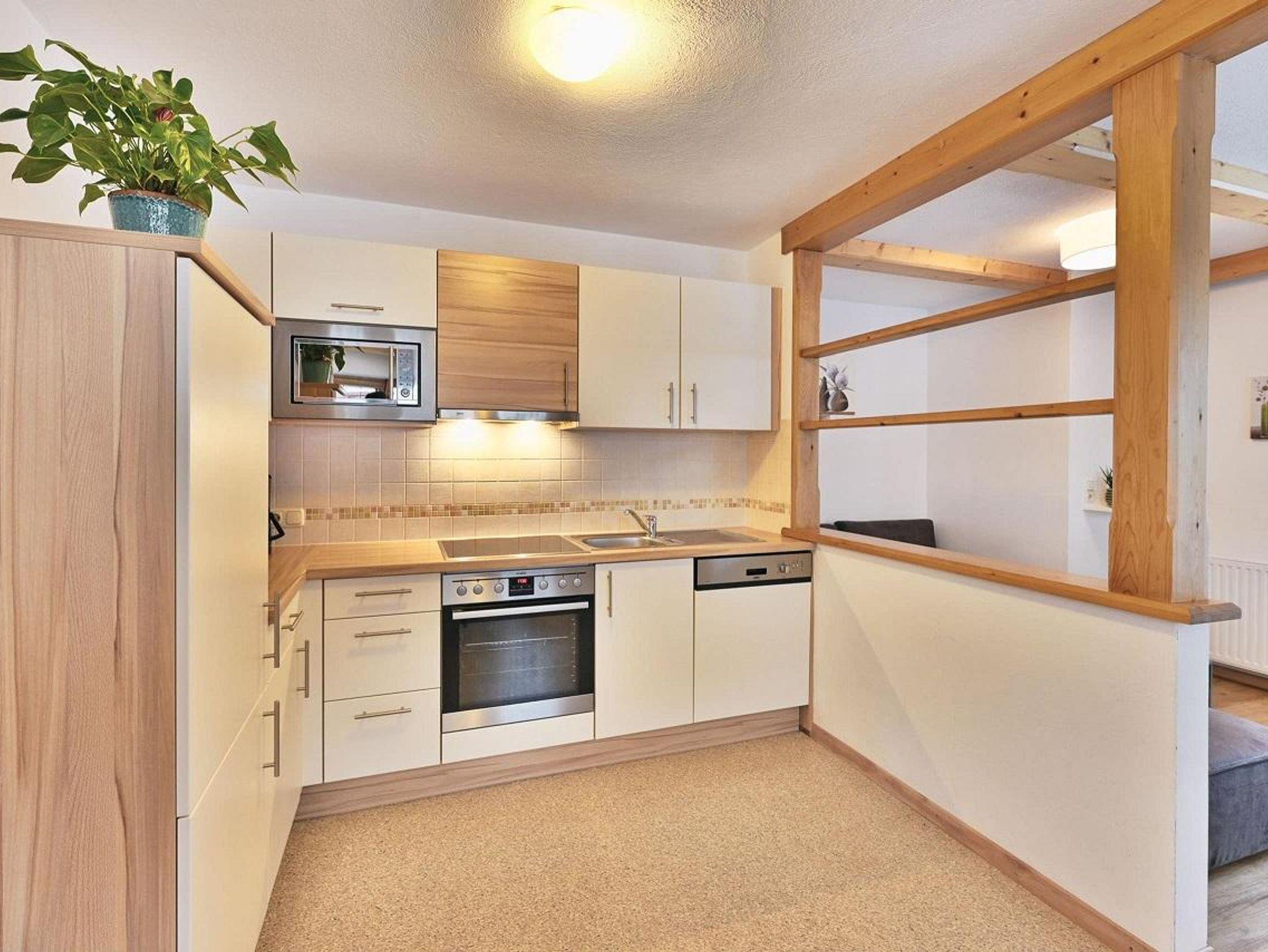- Gut ausgestattete Küche mit grossem Esstisch, E-Herd mit Backrohr, Mikrowelle, Kühlschrank mit Gefrierfach, Geschirrspüler, Kaffeemaschine, Wasserkocher und Sandwichtoaster.