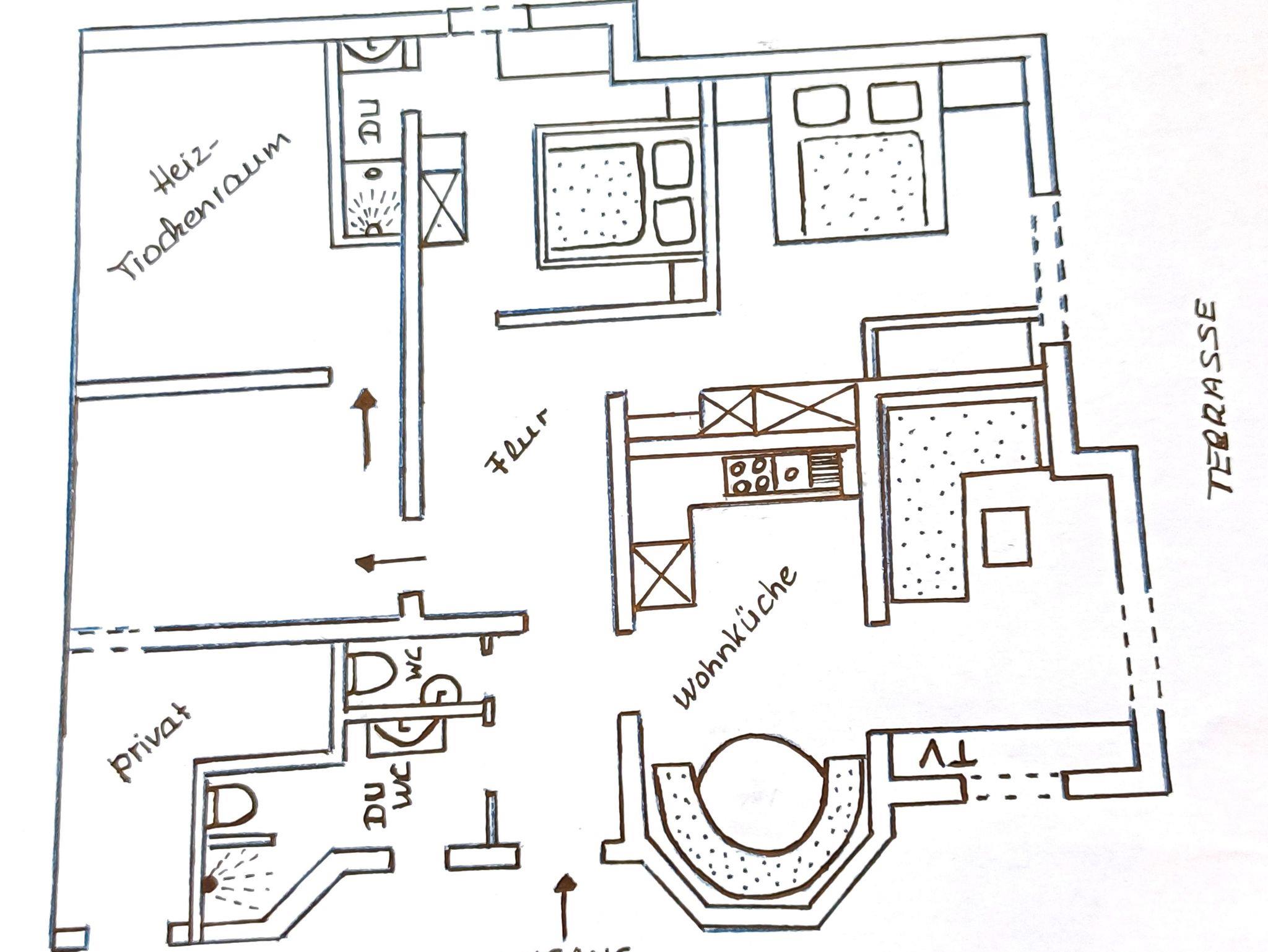 - 1 Doppel /Zweibettzimmer mit Dusche und extra WC (die Betten können bei Bedarf getrennt werden).