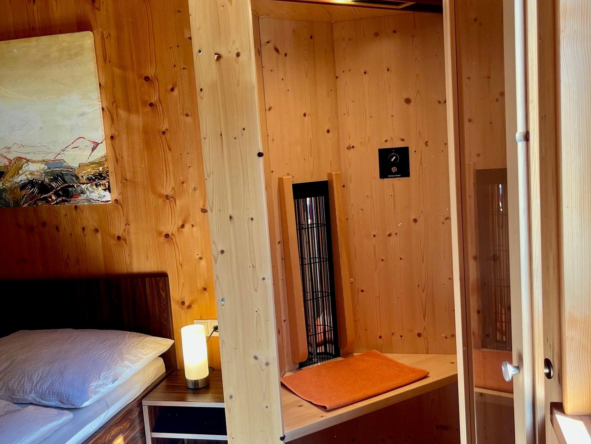 Genießen Sie einen guten Bergschlaf im einem Doppelzimmer mit Infrarotsauna, sowie einem Stockbettzimmer. Die großzügige Wohnküche steht für gemeinsame Essen und gemütliche Familienzeit. Zusätzlich stehen zwei Duschen mit WC zur Verfügung.
