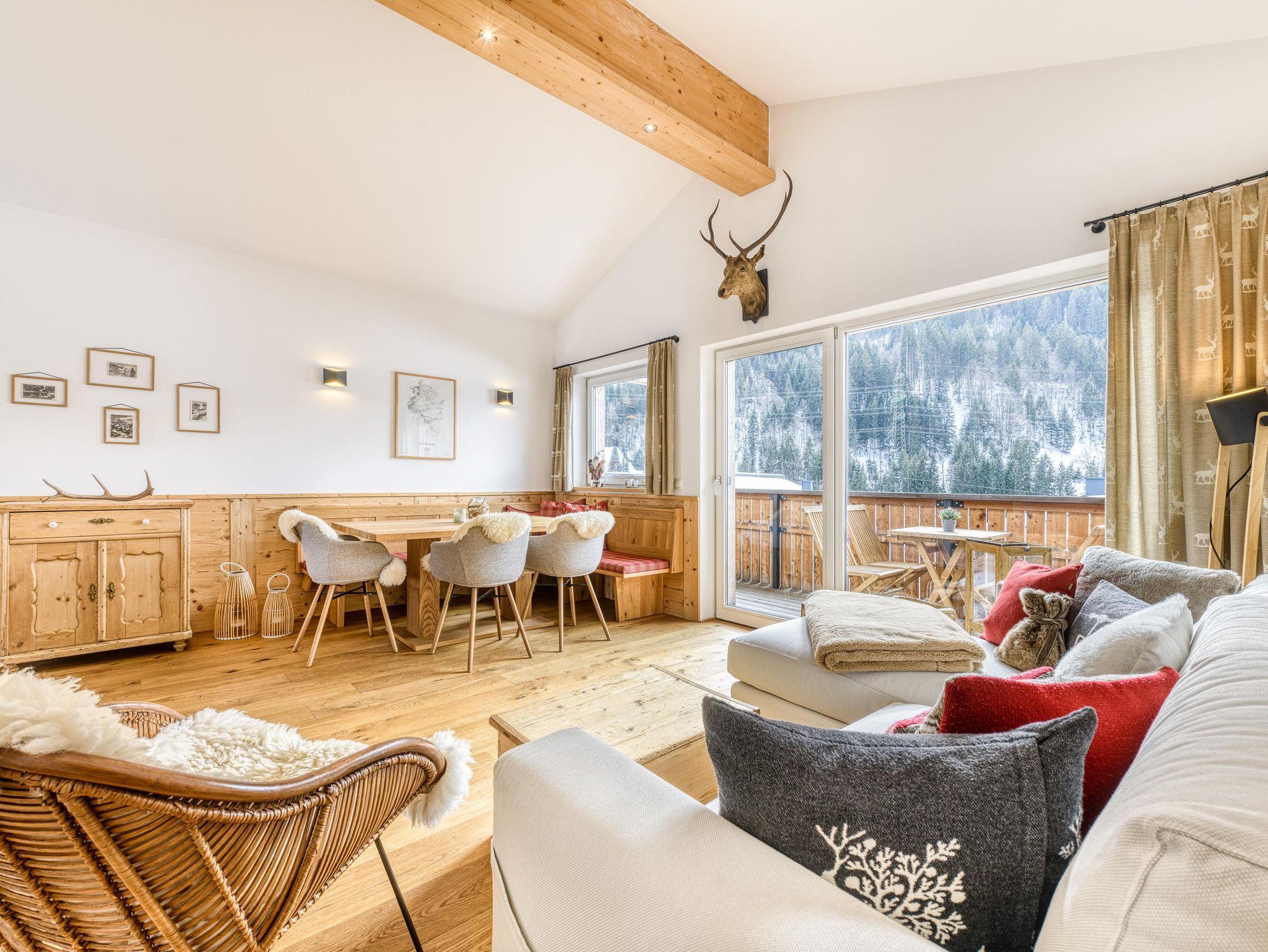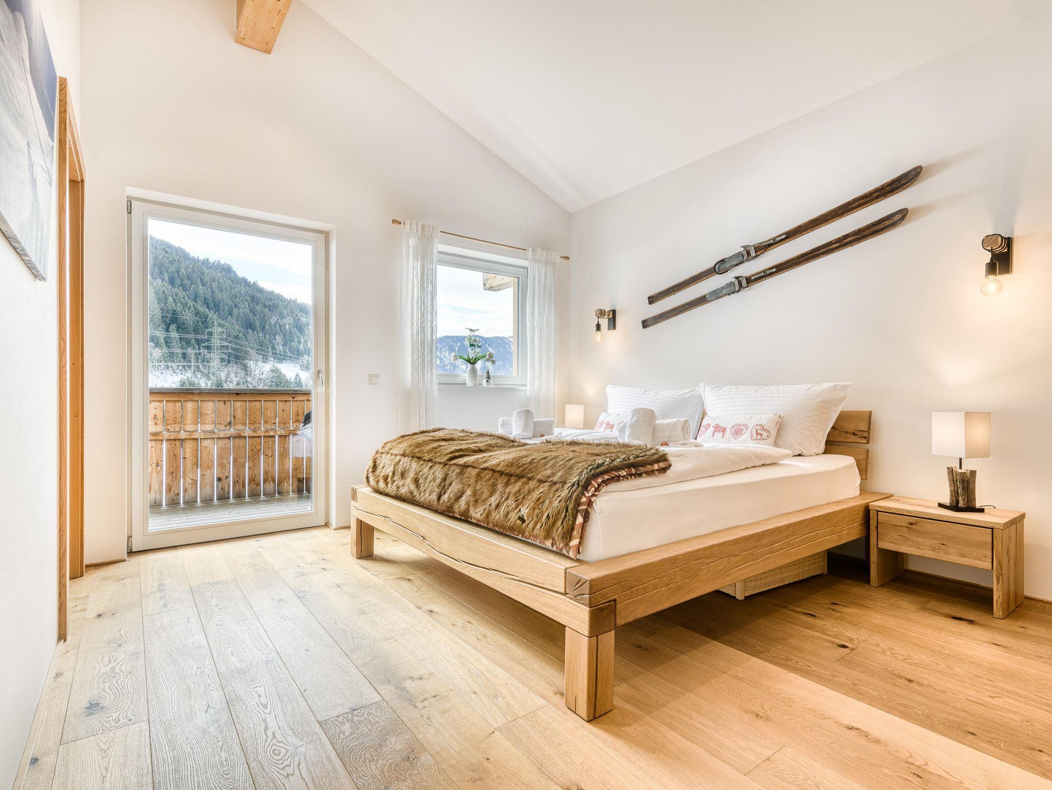 Zwei nach Süden ausgerichtete Balkone mit Tisch und Sitzgelegenheiten bieten den Gästen die perfekte Möglichkeit, sich nach einem Tag am Berg zu entspannen.