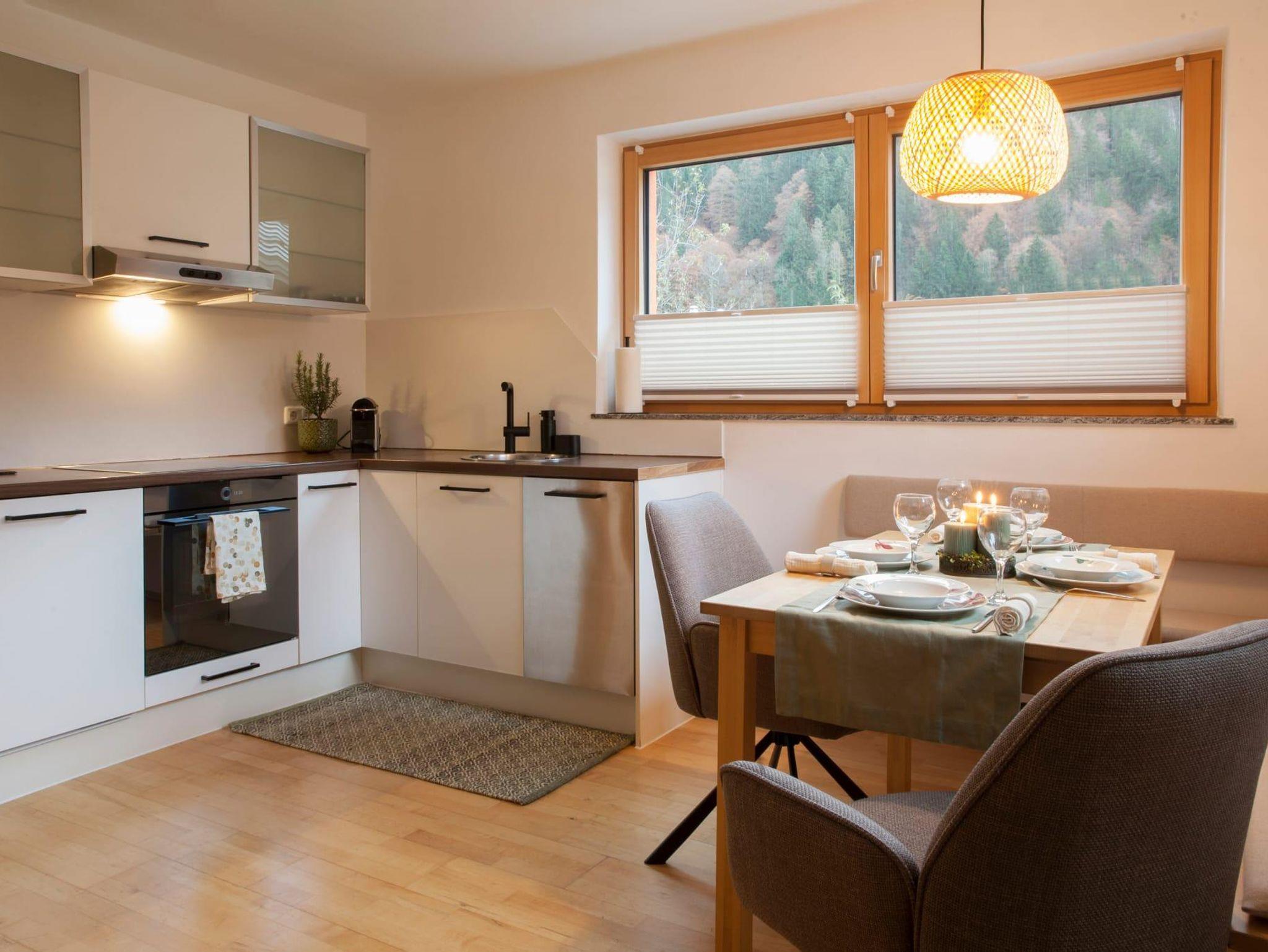Willkommen im Appartement Sonnenhalb. Das im Erdgeschoss gelegene Appartment mit 48 m² bietet zwei Schlafzimmer mit Doppelbetten, eines davon mit TV und Sofa. Die voll ausgestattete Küche mit Essbereich lädt zu gemeinsamen Mahlzeiten ein. Ein modernes Bad mit Dusche und WC ist vorhanden. Die Unterkunft ist rollstuhlgerecht und ideal für Gäste, die Komfort und Barrierefreiheit schätzen.