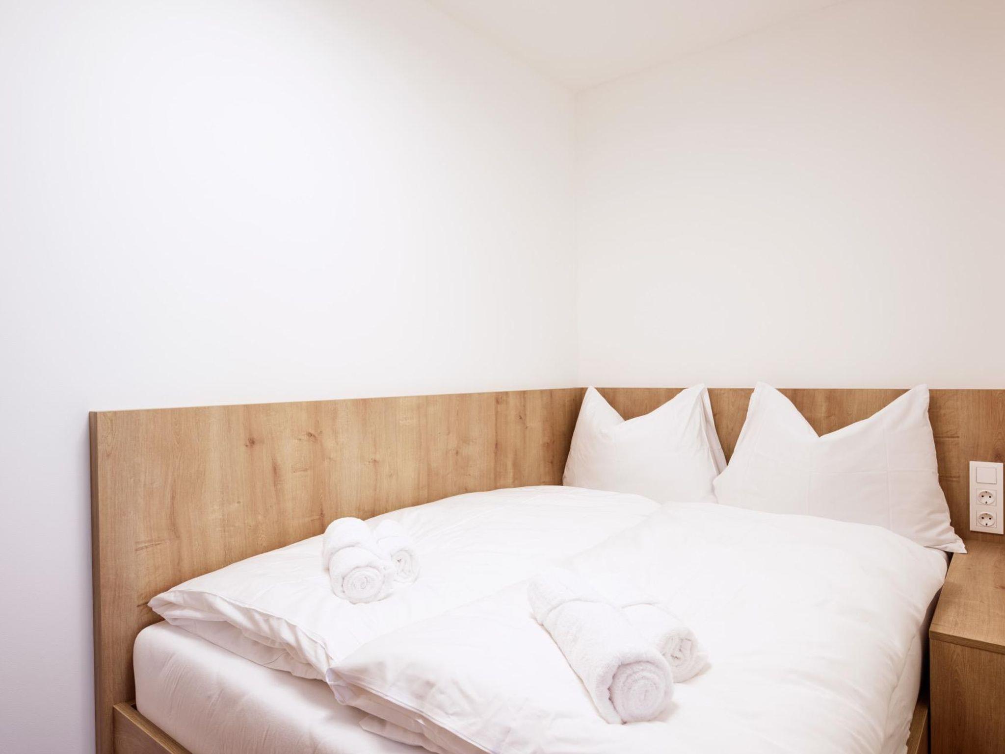 • 2 Schlafzimmer mit Doppelbett (kleines Schlafzimmer getrennt durch Schiebetüre, Zugang übers Schlafzimmer, ohne Fenster, Bett 140 cm breit)