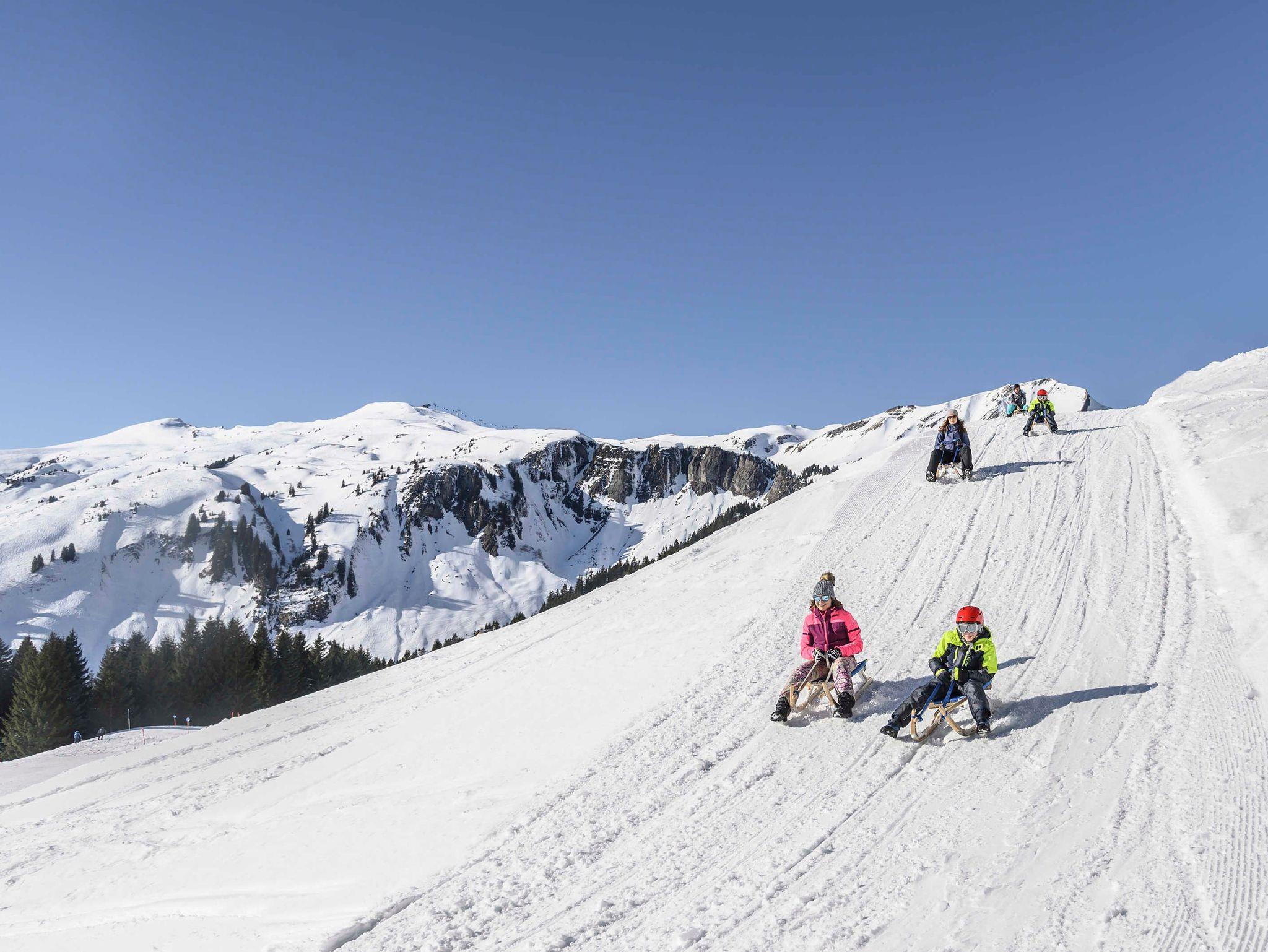 Zur 350 m entfernten Talstation des Uga-Lift (Ski-Depot Möglichkeit vorhanden) kommen sie bequem mit dem Dorfbus (in der Wintersaison alle 20 Minuten, Haltestelle direkt vor der Haustüre) oder zu Fuß.