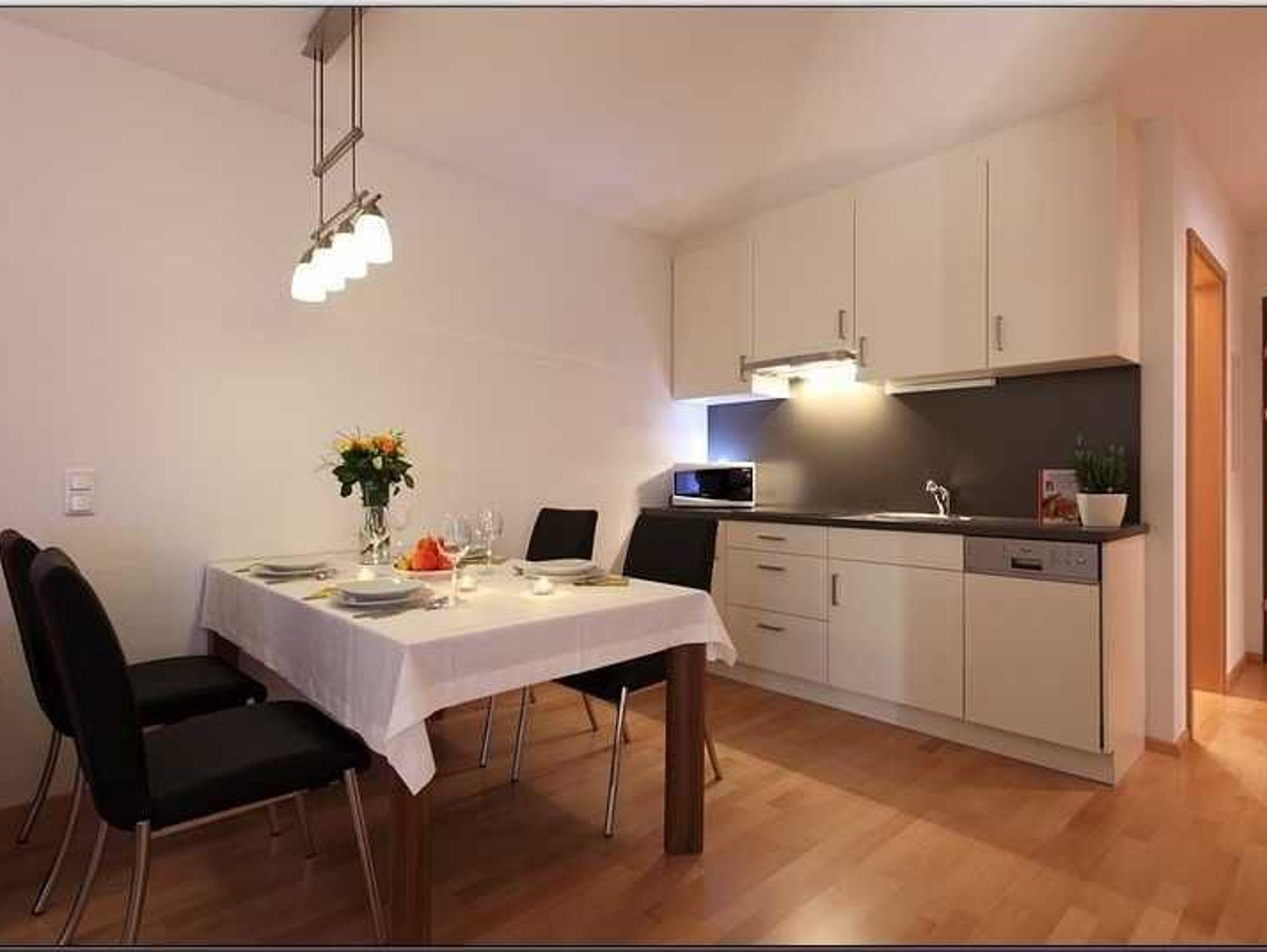 Die Küche ist voll ausgestattet mit allem was Sie brauchen: genügend Geschirr, Geschirrspüler, kleiner Backofen, Kaffeemaschine, Wasserkocher, Toaster etc. - alles da. Zusätzlich Flat-TV und selbstverständlich Internet mit Free-WLAN. Die überdachte und windgeschützte Terrasse ist mit Stühlen, Tisch und zwei Liegebetten ausgestattet. Waschmaschine und Trockner stehen im Skiraum zur Verfügung (€ 1,-- Münzeinwurf).