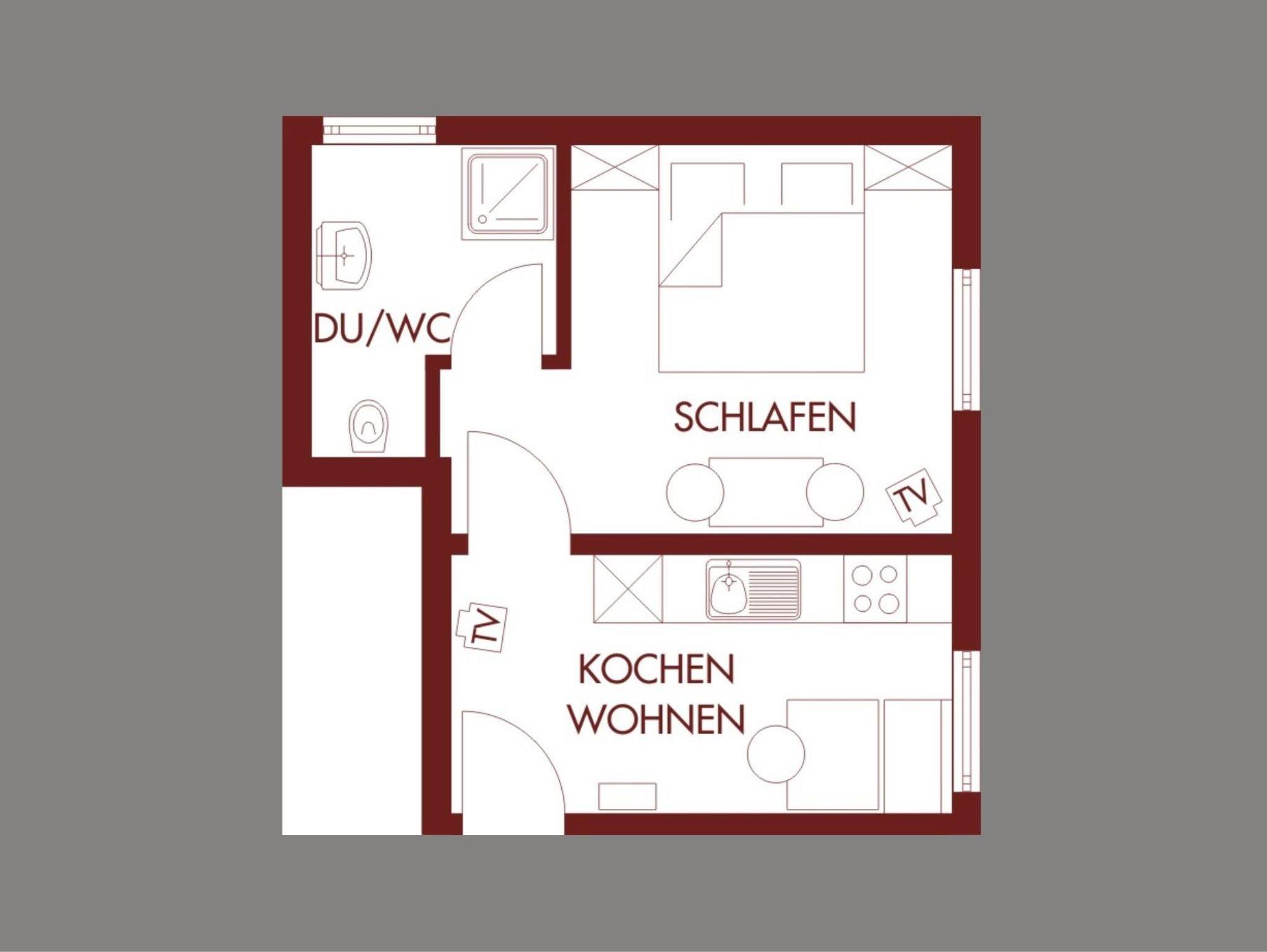 2-Personenwohnung ohne Balkon, 30 m², Zustellbett für 1 Person möglich