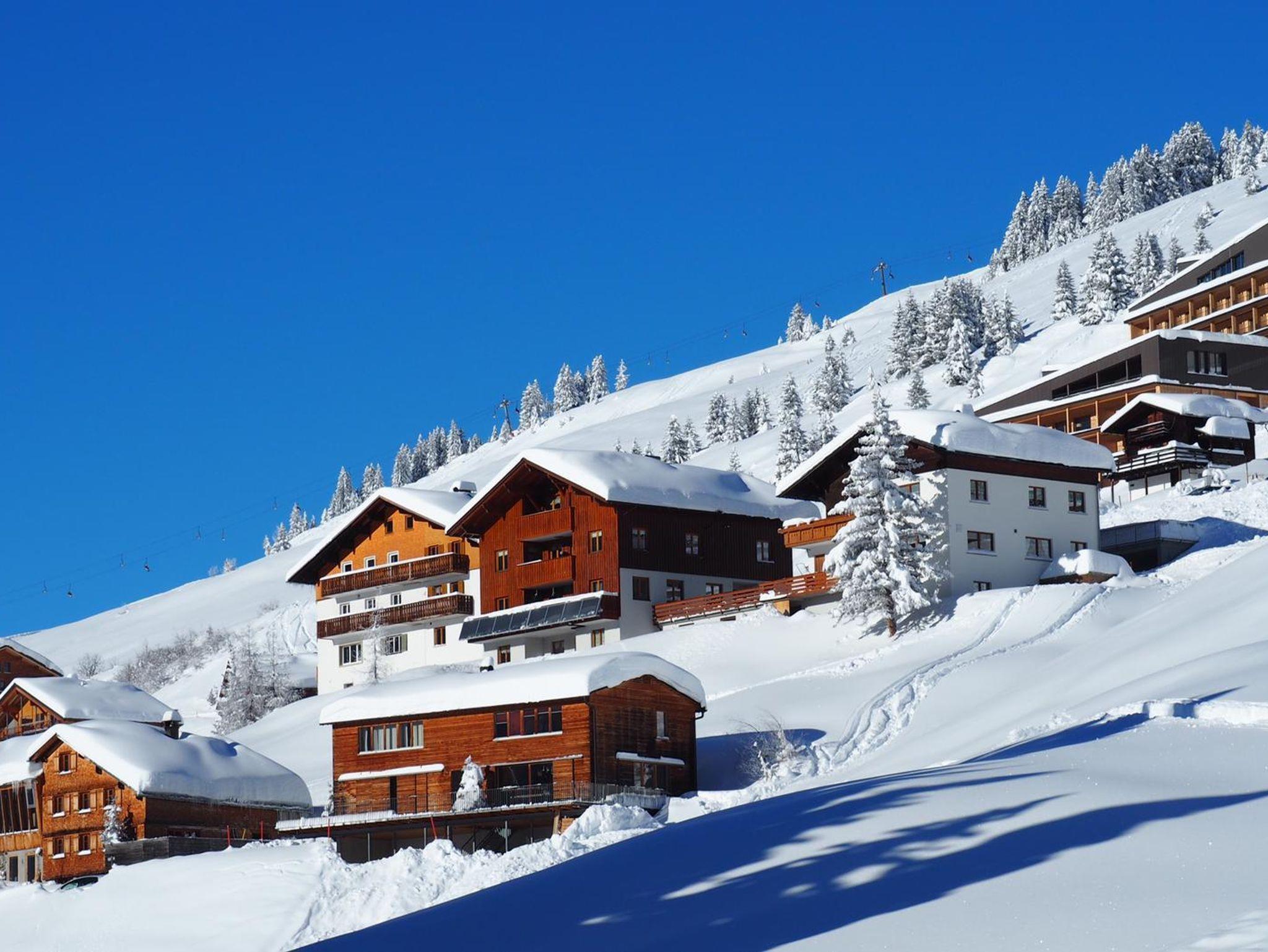 Unsere Frühstückspension Haus Furka (1514 m) befindet sich in ruhiger Lage am Ortsrand von Damüls, einem idyllischen Bergdorf.