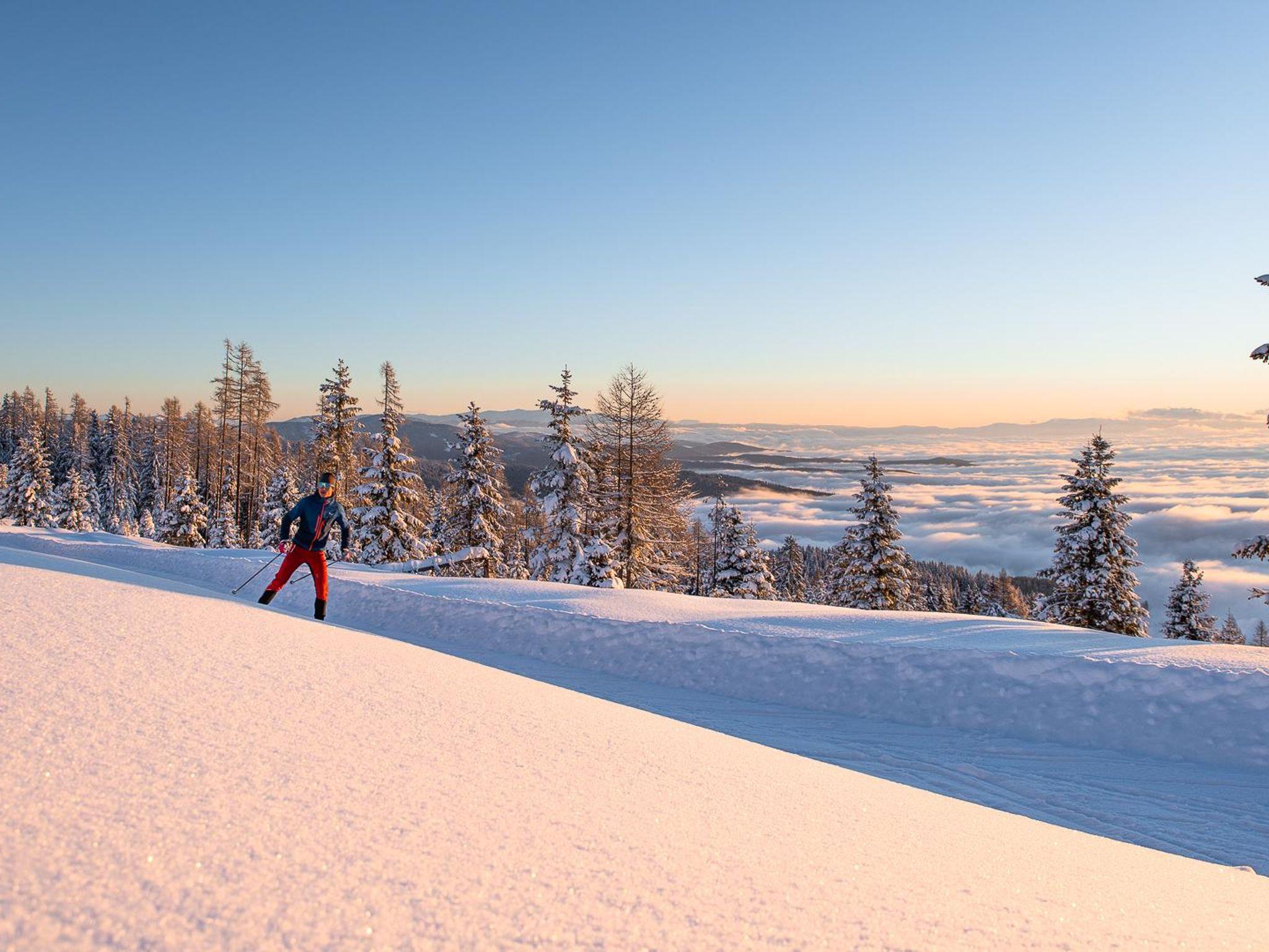 Und im Winter? Nur 4 km entfernt liegt eines der schönsten Familienskigebiete Kärntens. Die Hochrindl lockt mit 21 km familienfreundlichen Abfahrten und ist bekannt für ihre sonnige Lage oberhalb der Nebelgrenze.