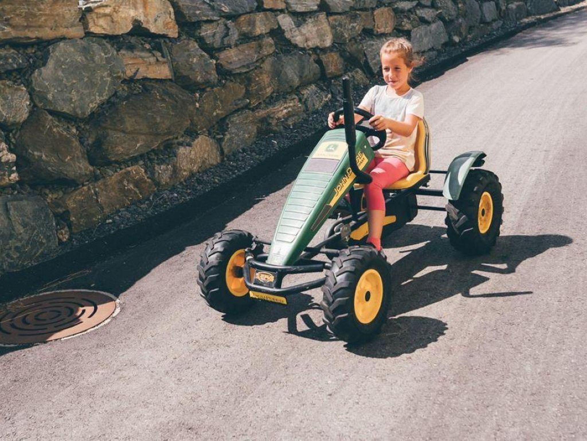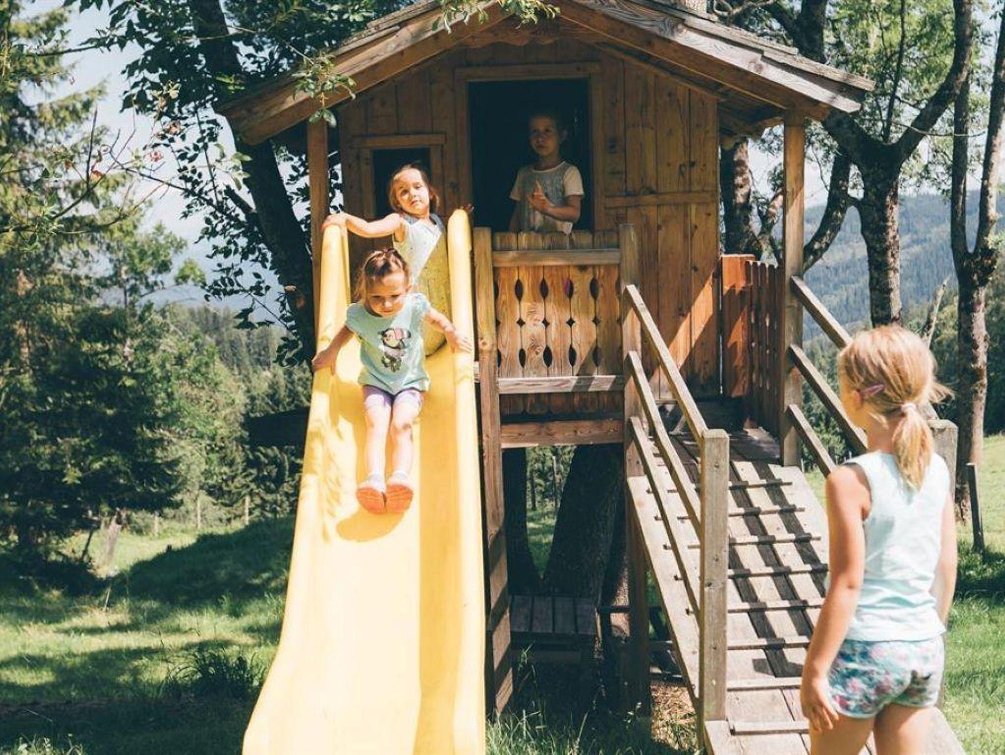 • Plantschbecken, Gokarts und Spielplatz mit Rutschen, Schaukeln, Sandkasten und Baumhaus