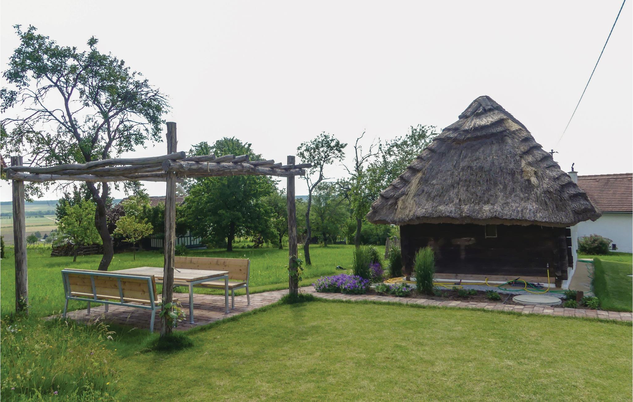 Dette charmerende feriehus vil glæde jer med sin autentiske udsigt udefra, som er kendetegnet ved det stråtag, der er typisk for regionen. Indenfor finder I en overraskende moderne og behagelig atmosfære. Det åbne soveværelse under stråtaget, der er tilgængeligt via en stige, lover romantiske timer. To komfortable sovesofaer i stueetagen giver jer ekstra plads til afslappende nætter. Det kærligt udformede sengetøj i det traditionelle "blå print" afspejler især den vellykkede kombination af tradition og modernitet. I det lille hyggelige køkken kan I tilberede morgenmad med regionale delikatesser, mens druelyen i den idylliske have lægger op til at blive hængende og nyde et glas vin.