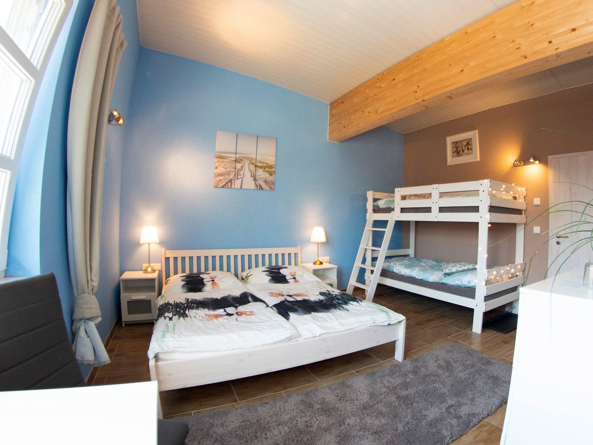 Unser Famililienzimmer ist mit einem Doppelbett und einem Stockbett für Kinder ausgestattet. Vom Fenster aus haben Sie einen herrlichen Blick auf unseren Garten und unsere Tiere. Der Fernseher verfügt über Netflix. Ein DVD Player und ein DVD Verleih sind ebenfalls vorhanden.