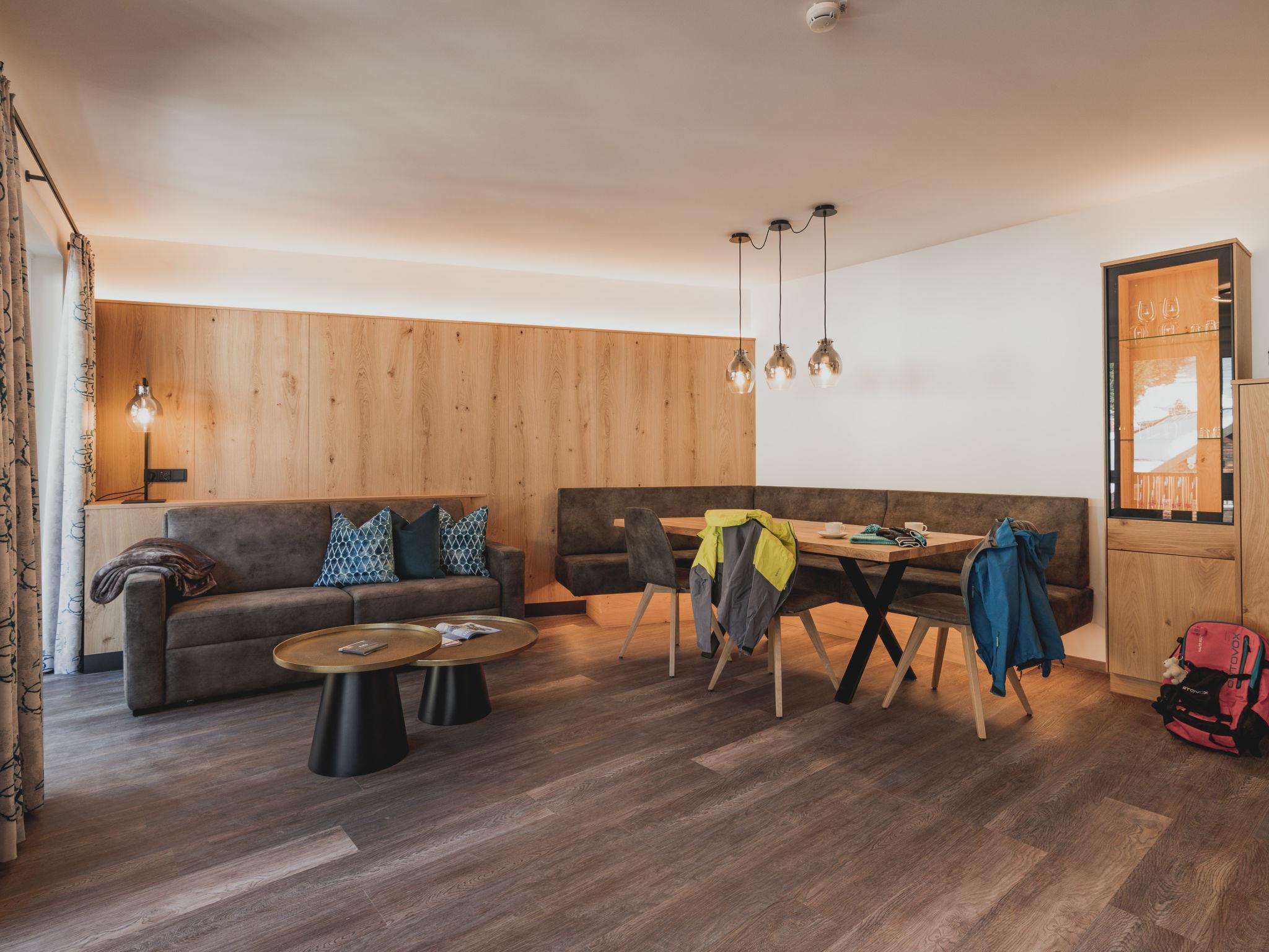 "3 Raum Typ Hochkönig", 3-room apartment 85 m2. Spacious and bright, tasteful furnishings: living/sleeping room with 1 double sofabed, dining table and satellite TV (flat screen). 2 double bedrooms. Open kitchen (dishwasher, 4 ceramic glass hob hotplates, kettle, microwave, electric coffee machine, Capsules for coffee machine (Nespresso) extra). 2 showers/WC. Balcony. Balcony furniture. Beautiful view of the mountains, the countryside and the resort. Facilities: sauna, hair dryer. Internet (WiFi, free). Please note: non-smokers only. The sauna is an infrared cabin! 50603-000120-2020