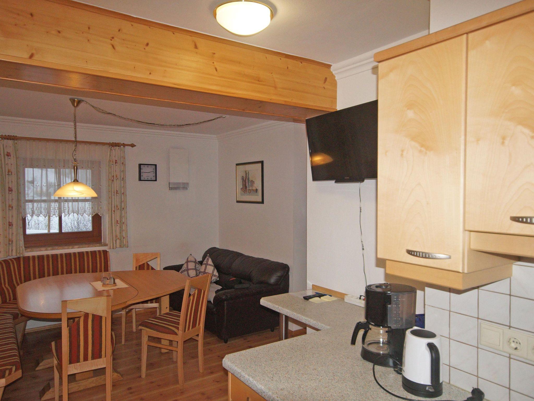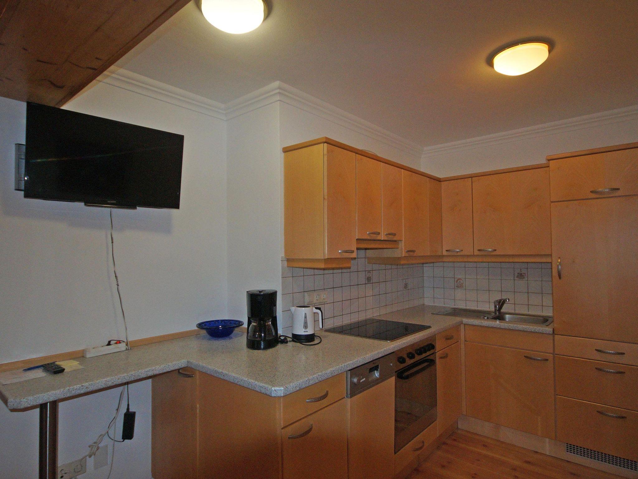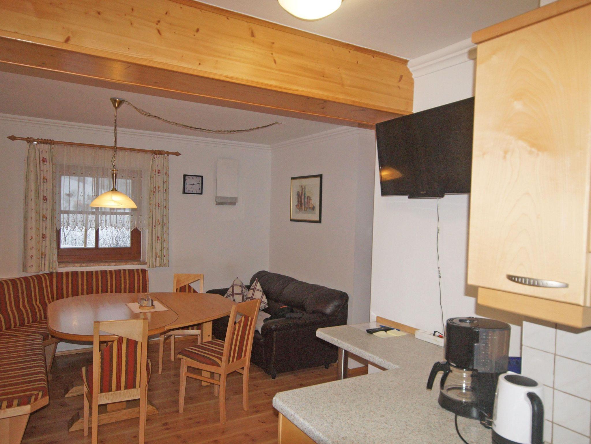 Wohnküche (Geschirrspüler, Kabel-TV, Balkon), Doppel- und Dreibettzimmer, Fußbodenheizung, Duschraum, WC, direkt an der Skischaukel, ruhige Lage. Skischulnähe.