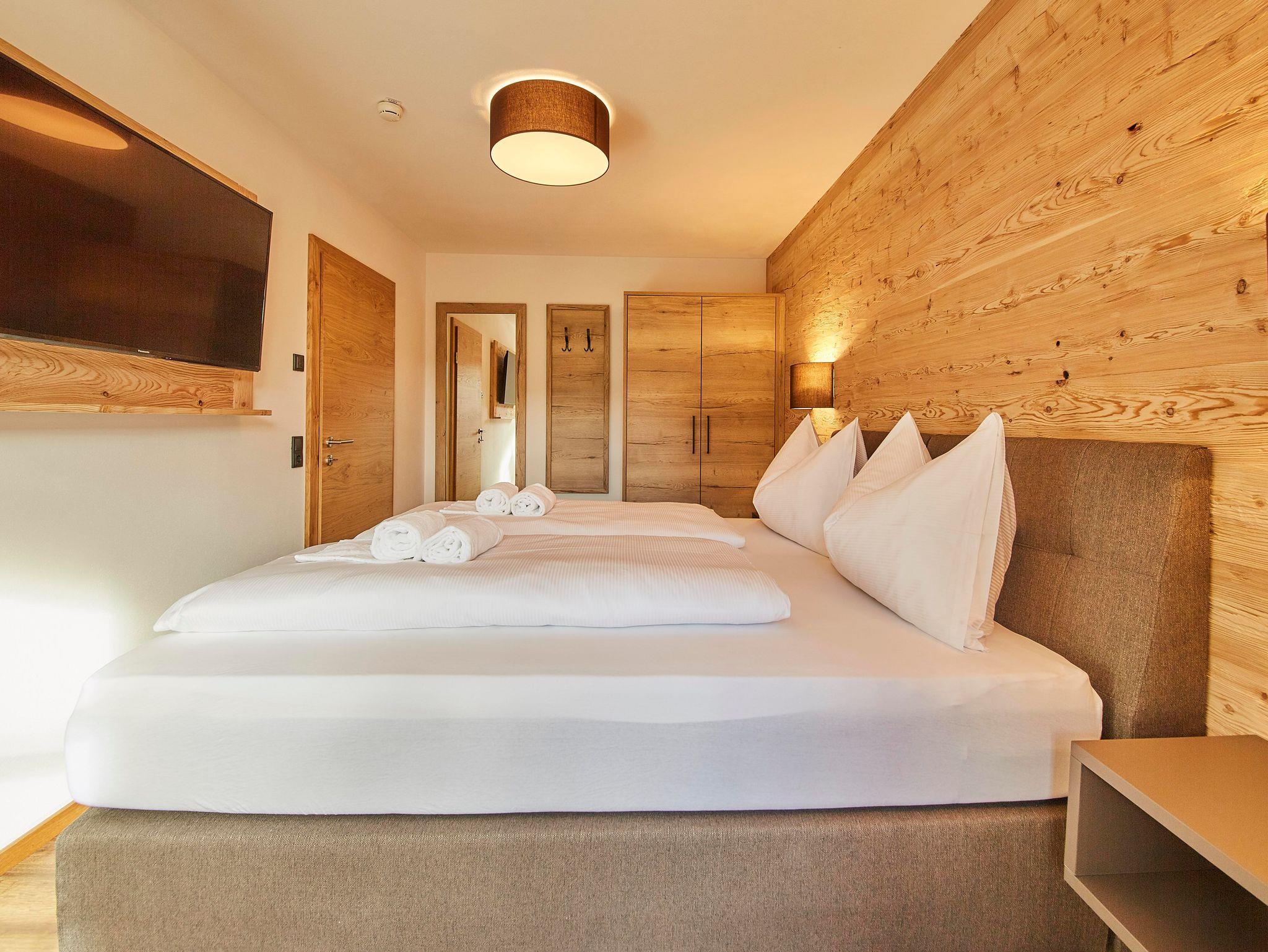 Willkommen im Premium Penthouse Apartment Peak 14! Dieses Penthouse bietet auf 75m² Platz für bis zu 6 Personen und verfügt über 2 Schlafzimmer mit Doppelbetten, 2 Badezimmer mit Regenduschen, sowie einen Wohnbereich mit Smart-TV und Schlafsofa. Die Küche mit Granit-Arbeitsplatte ist voll ausgestattet. Genießen Sie die große, südlich ausgerichtete Terrasse mit Blick auf die Kirche und Berglandschaft. Tiefgarage, freies WLAN, ein Supermarkt im Haus und ein Skiraum runden das Angebot ab.