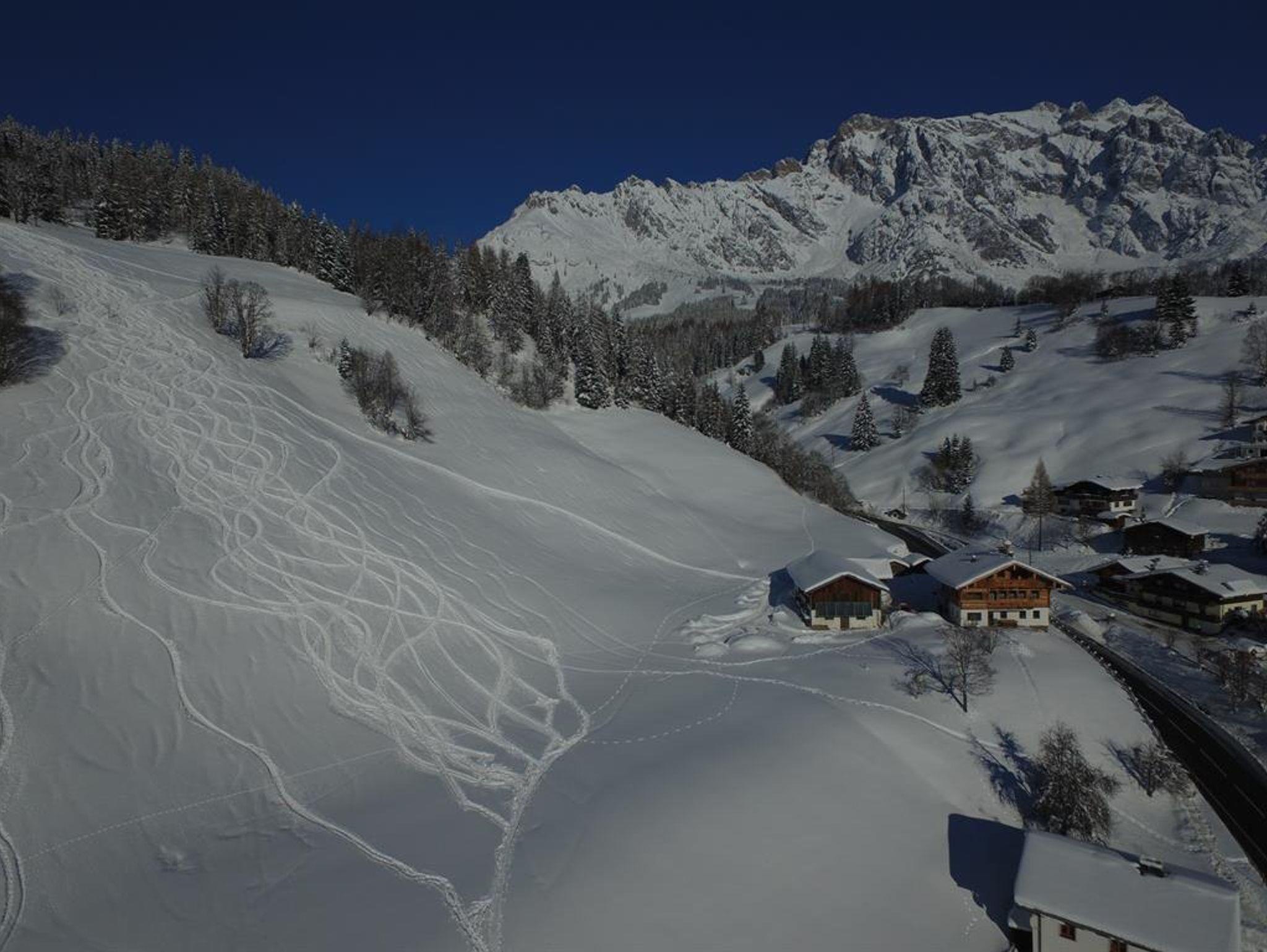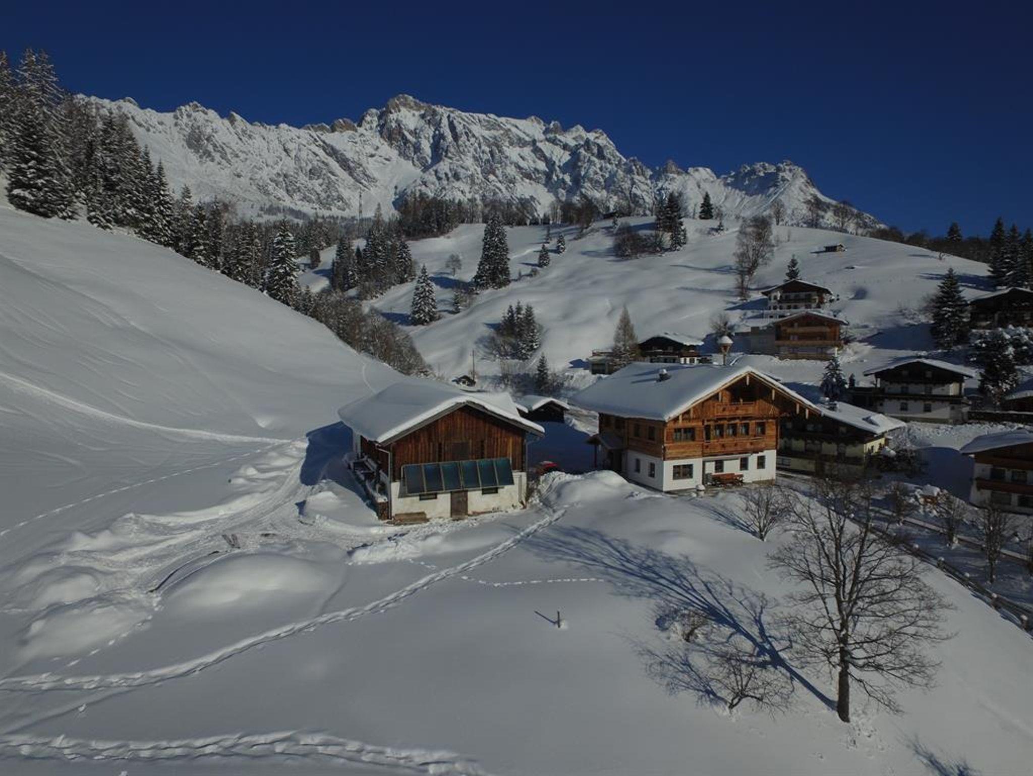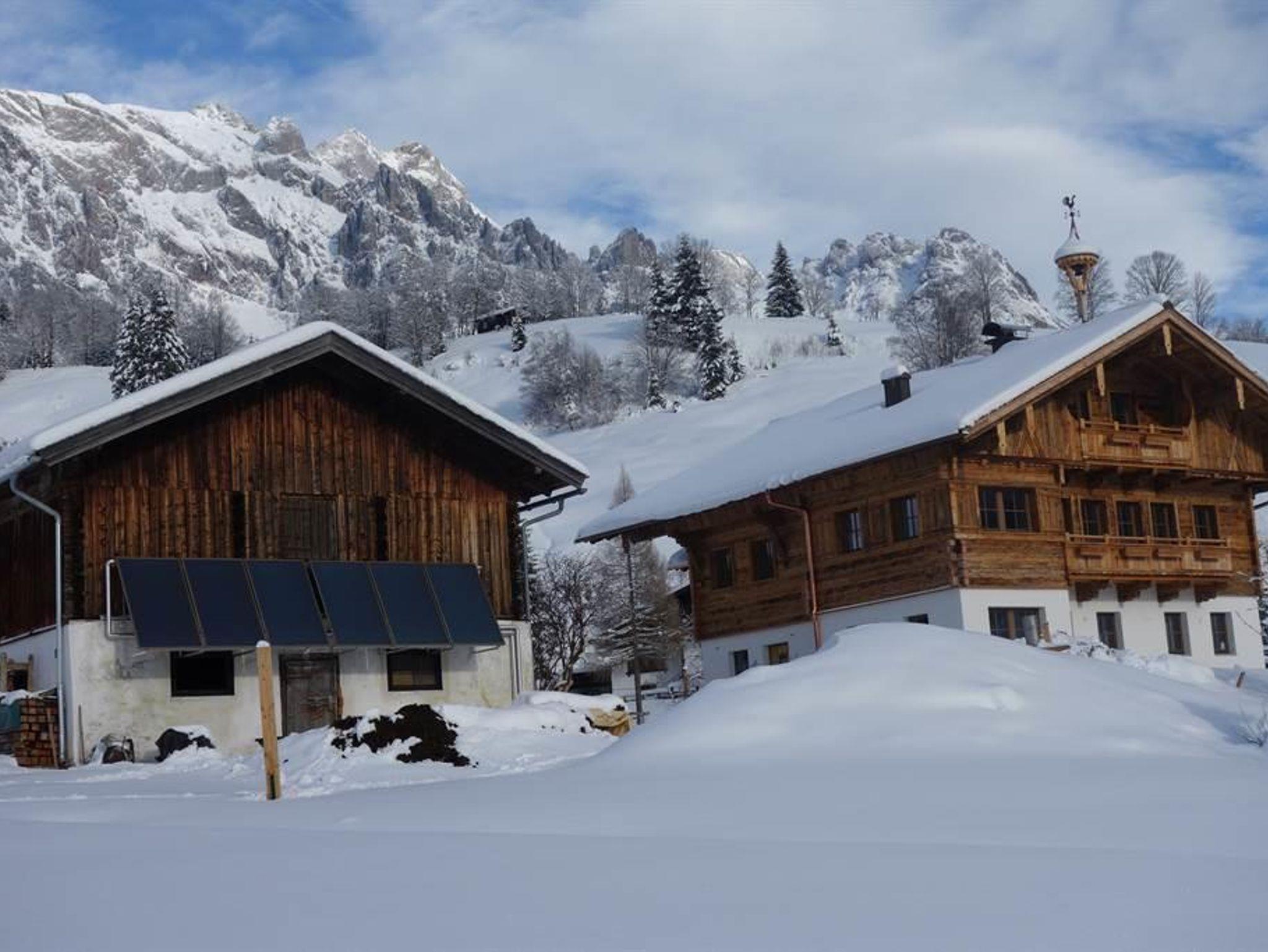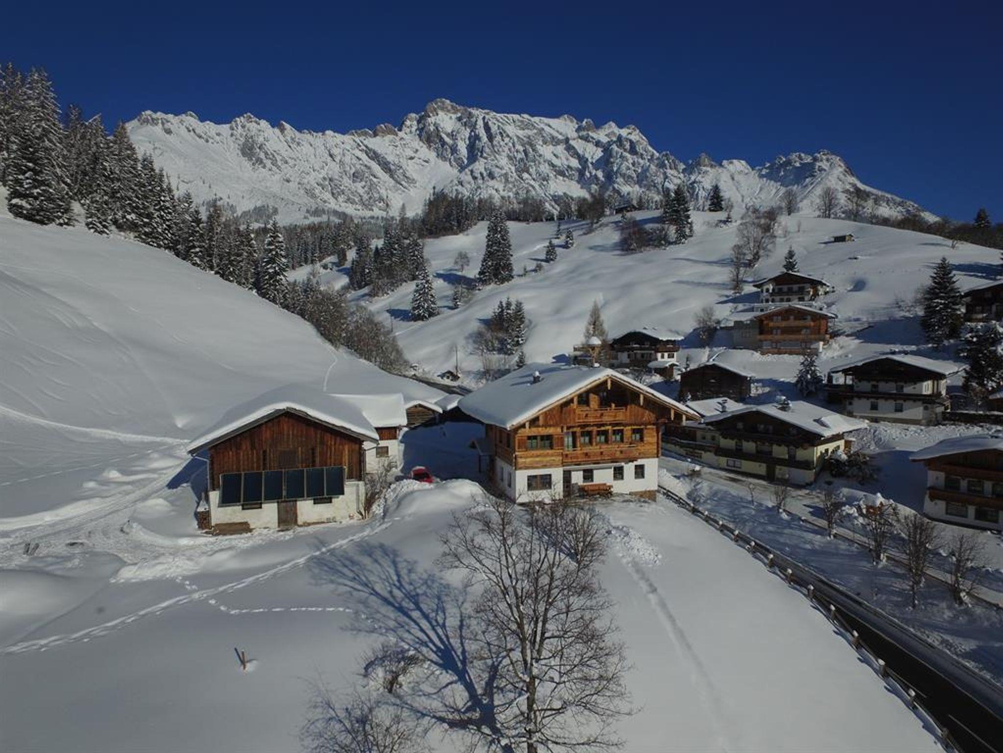 Unser Bauernhaus liegt auf einer kleinen Anhöhe mit direktem Blick auf den Hochkönig und auf die Schipisten. Der Schibus ist zu Fuß inerhalb von ca. 2 Minuten erreichbar.
