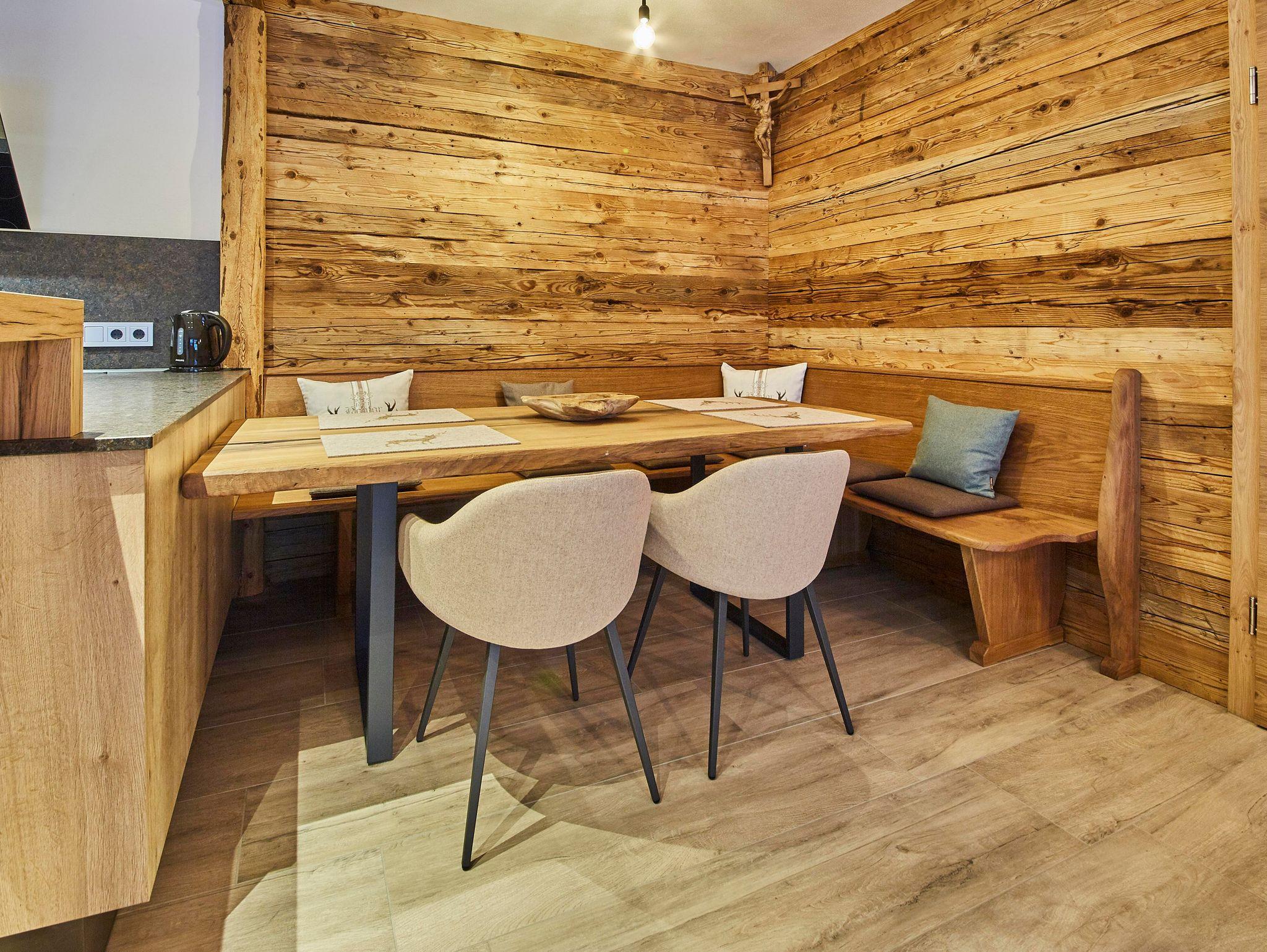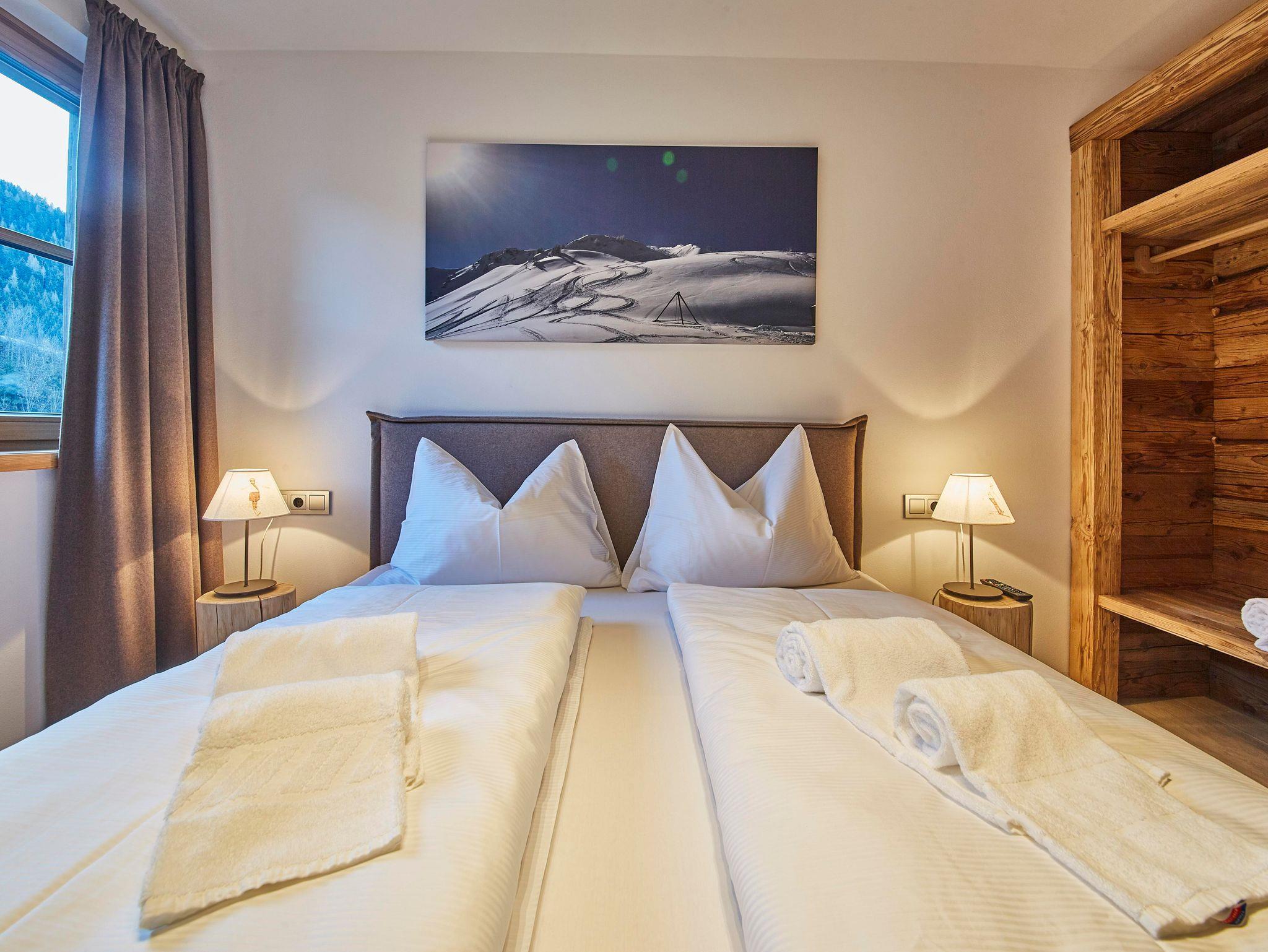 Willkommen im Premium Apartment Peak 3 mit Platz für bis zu 4 Personen! Auf 80 m² erwarten Sie 2 Schlafzimmer mit Doppelbetten und Smart-TVs sowie 2 moderne en-suite Badezimmer mit Regendusche, WC und privater Sauna. Der Wohnbereich begeistert mit einem großen Smart-TV, einer voll ausgestattete Küche mit Granit-Arbeitsplatte und Miele Geräten. Genießen Sie Blick auf das Hochkönigmassiv und die romantische Kirche vom Balkon.