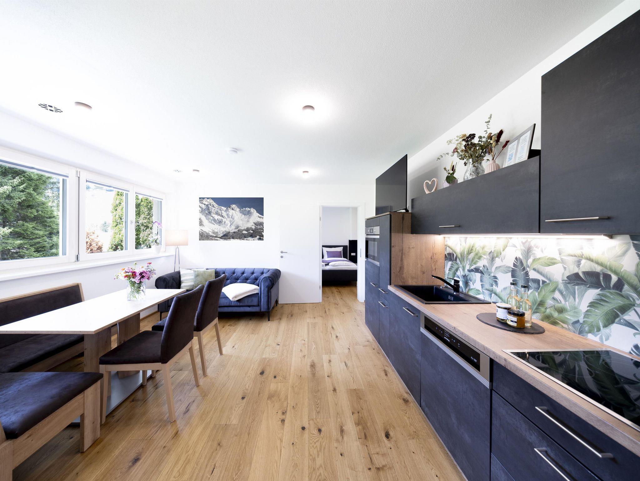 • voll ausgestattete Küchenzeile im gemütlichen Wohn-Essbereich mit Platz für 4 Personen,