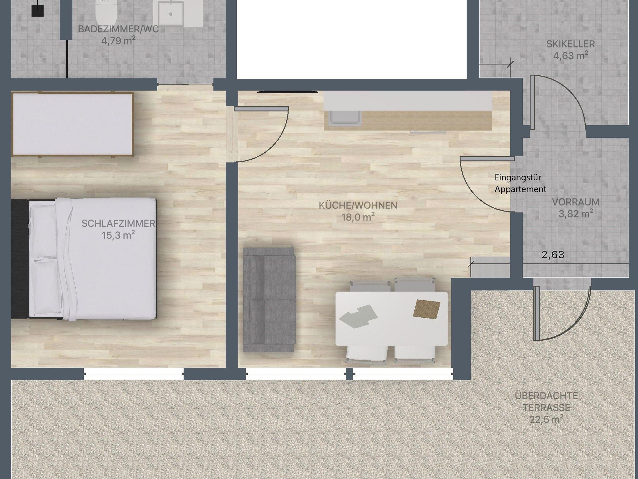 Das DU.Appartement verfügt über folgende Räumlichkeiten: