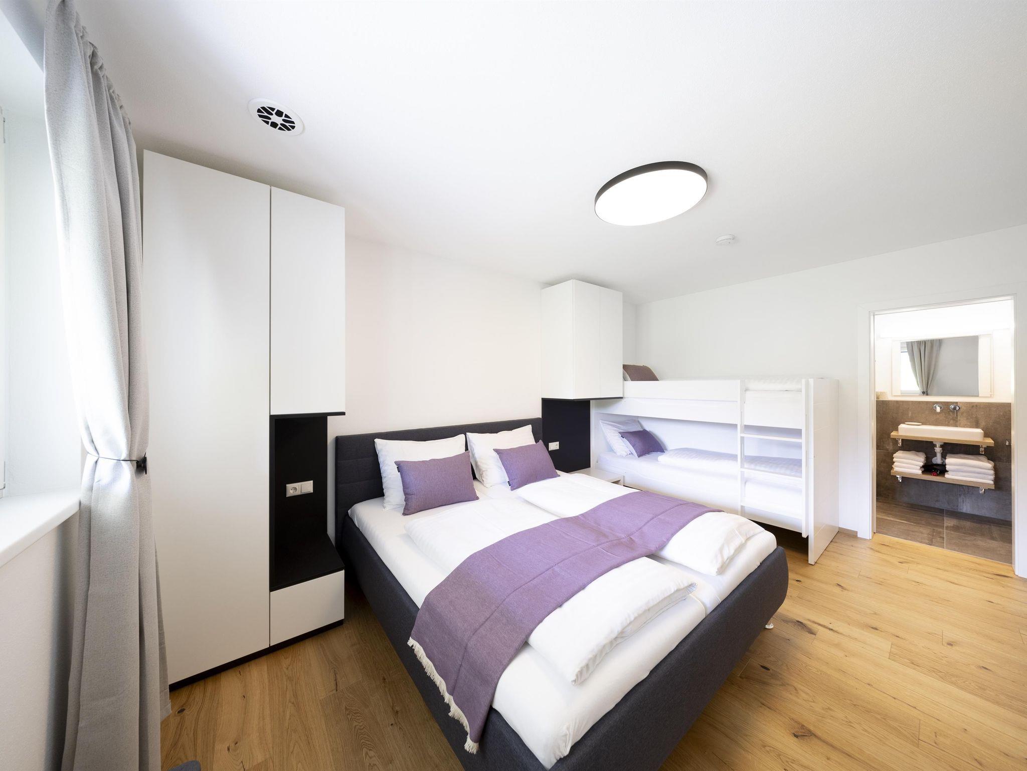 ein Appartement für bis zu 2 Erwachsene und 2 Kinder, ca. 46m², eine voll ausgestattete Wohnküche mit Essbereich, 1 Schlafzimmer (1 Doppelbett, 1 Etagenbett), Badezimmer mit Dusche und WC, TV, WLAN, Nichtraucher, keine Haustiere