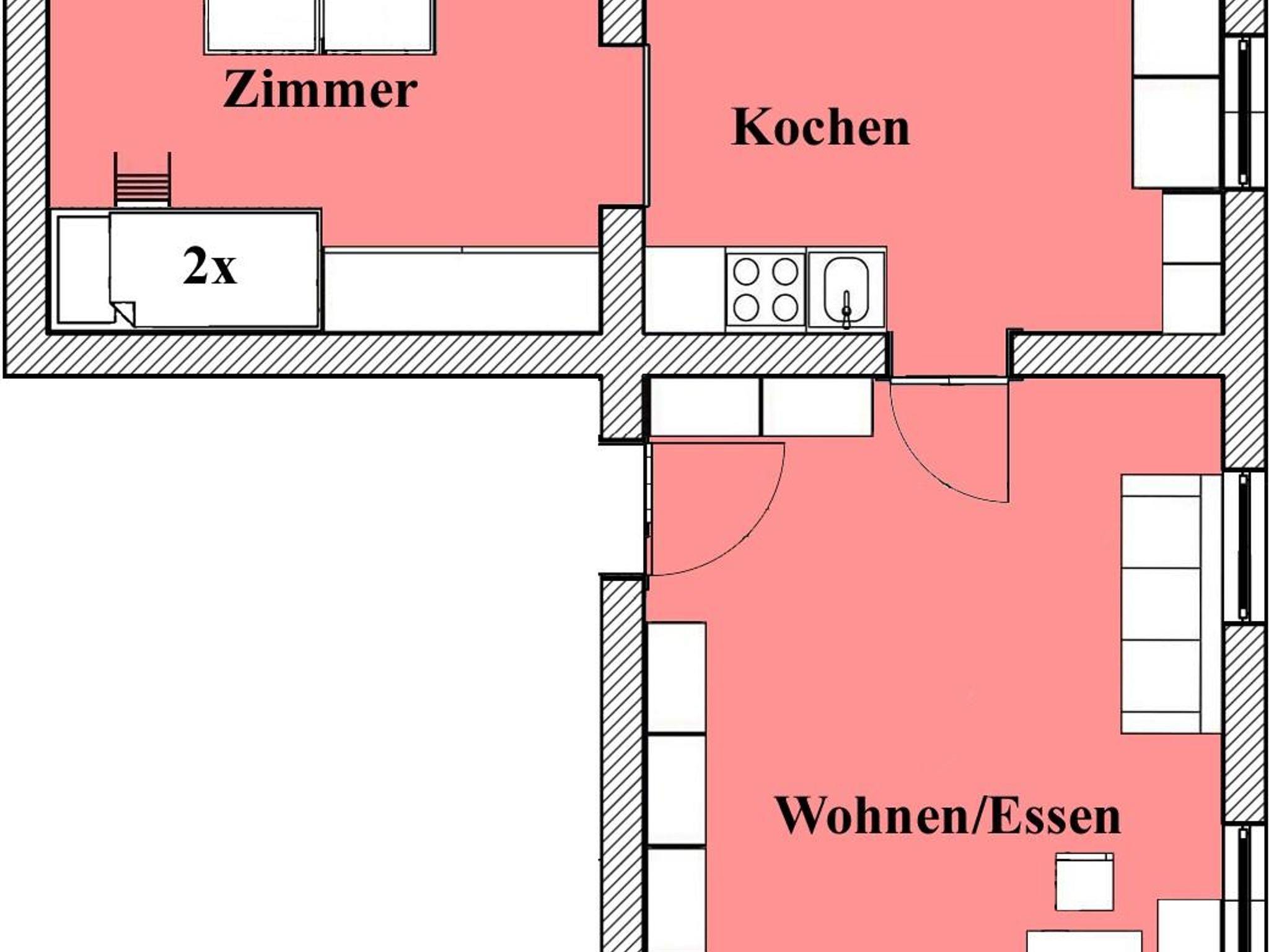 ~ 55 m2 für max. 4-6 Personen. Eine große geräumige Wohnung; große Küche mit Küchenblock mit 4-Plattenherd mit Backrohr, Mikrowelle, Kühlschrank, Geschirrspüler und Kaffeemaschine. Im Wohnraum befindet sich eine gemütliche Sitzecke, Doppelausziehcouch und Sat-TV. Ein separates 4-Bettschlafzimmer (1 Doppelbett, 1 Stockbett), Bad mit Dusche und Waschbecken und separaten WC.