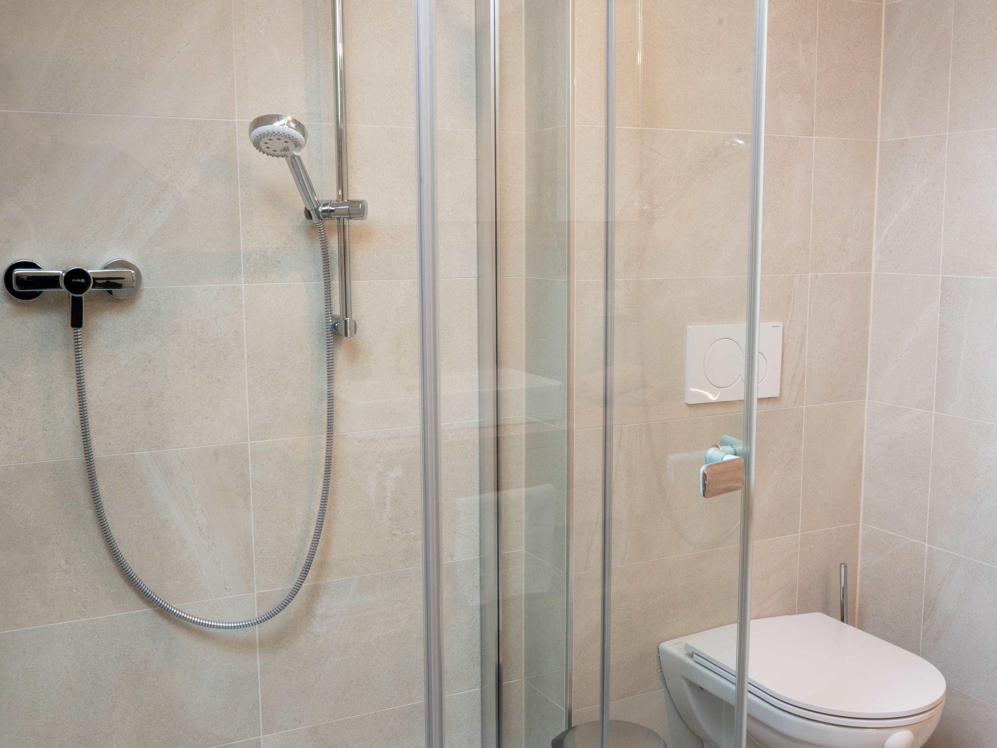 • geräumigen, Vollholz-möblierten Einzel-, Doppel-, Familienzimmern und Studios mit Boxspringbetten in „Treca“ Topqualität, Dusche oder Badewanne, separatem WC