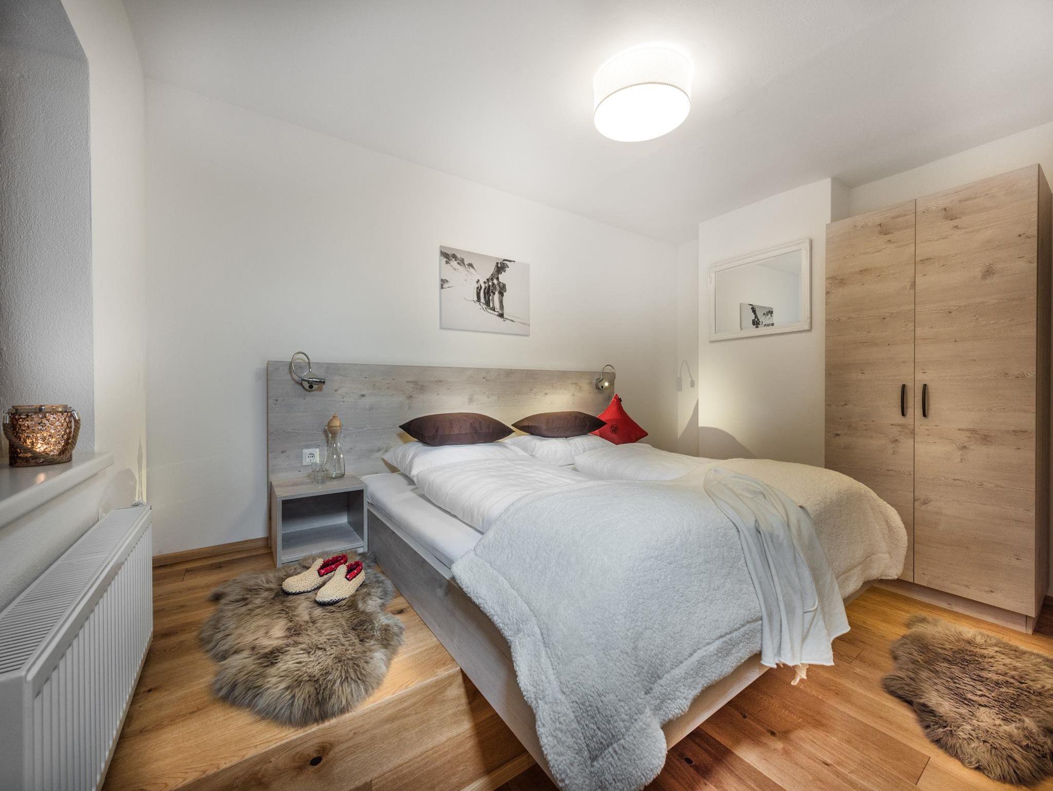 Eine größere Wohnung mit Balkon bietet 2 Schlafzimmer - die weitere Einrichtung ist gleich wie bei den beiden kleineren.