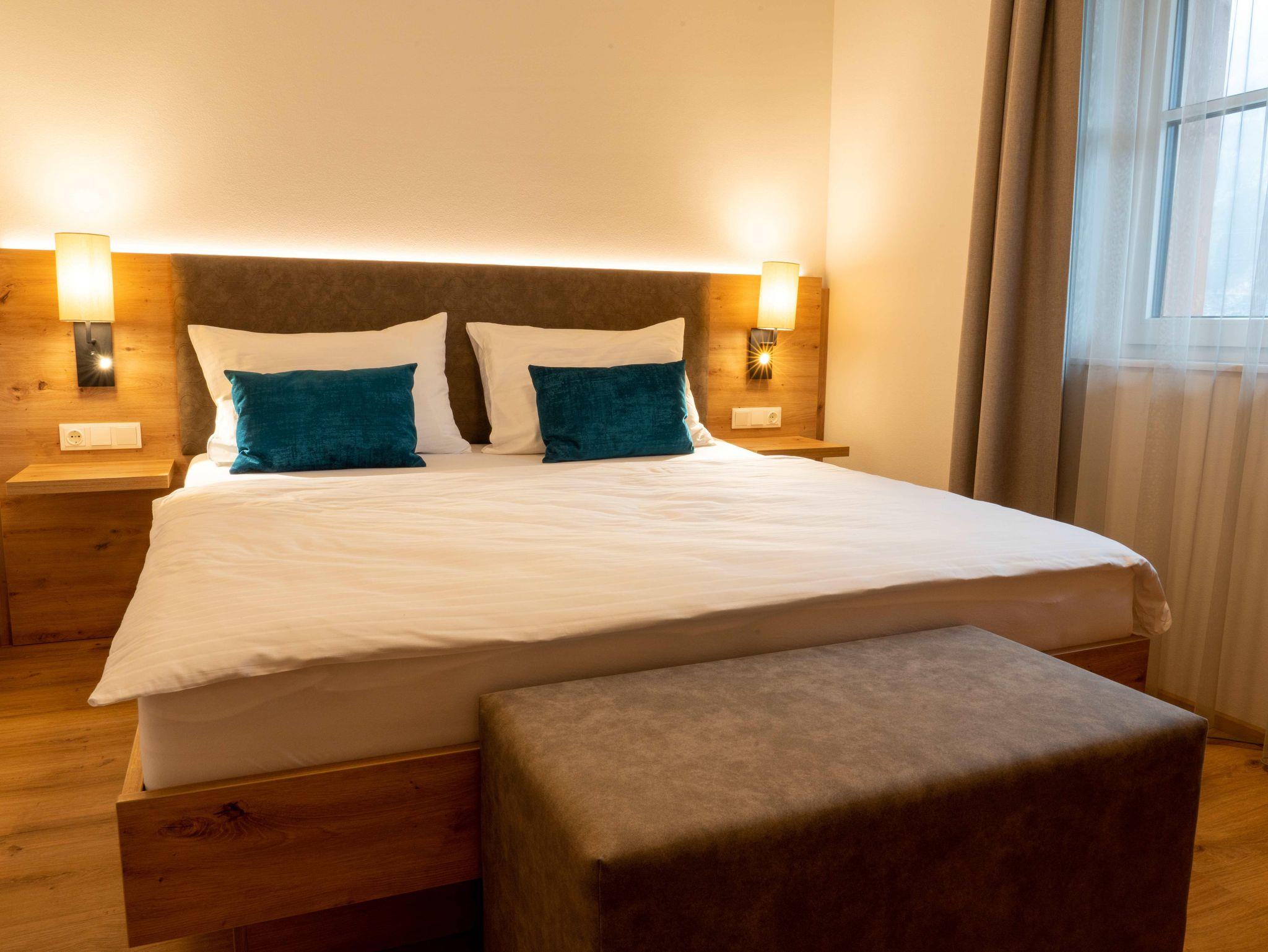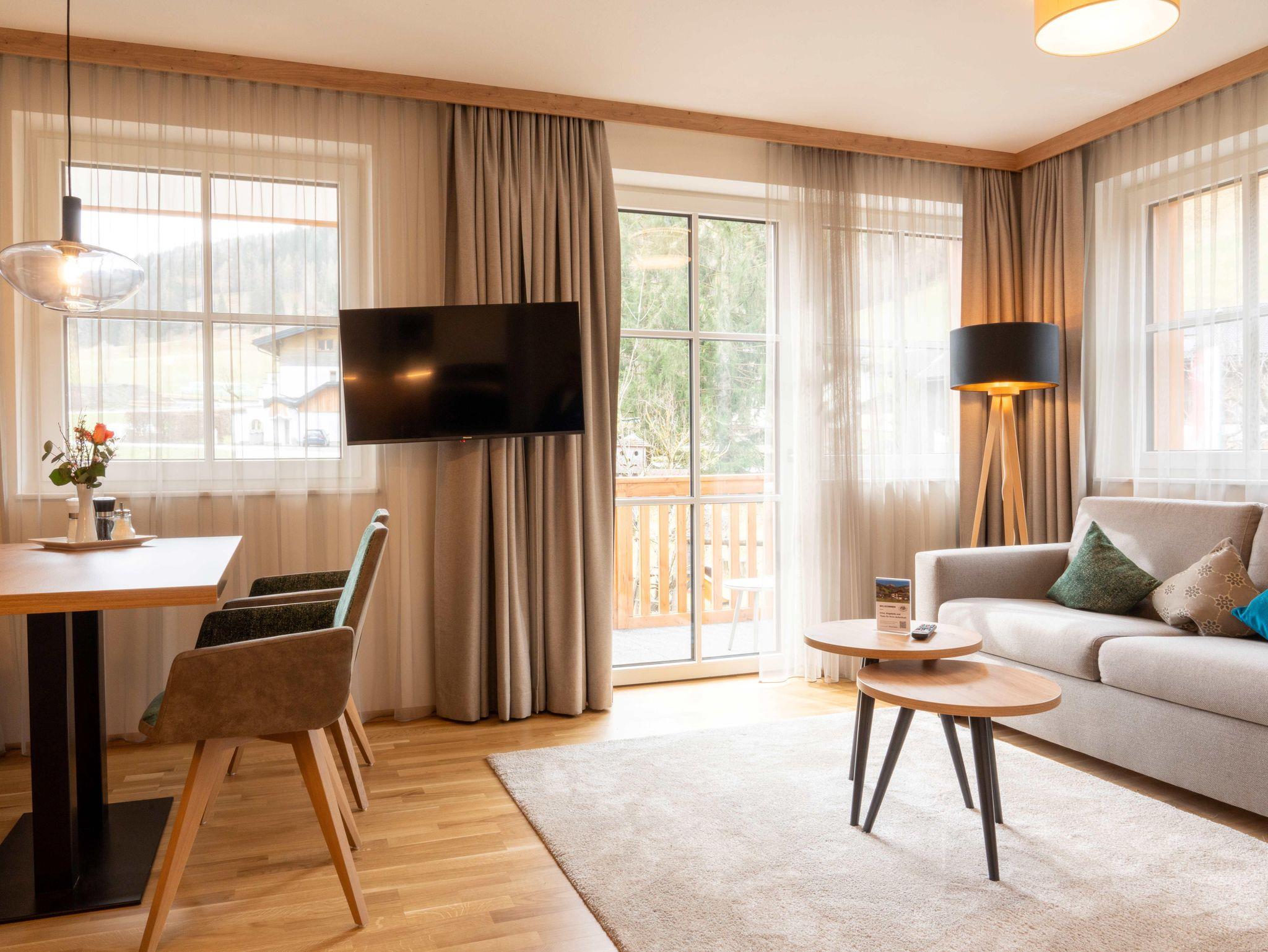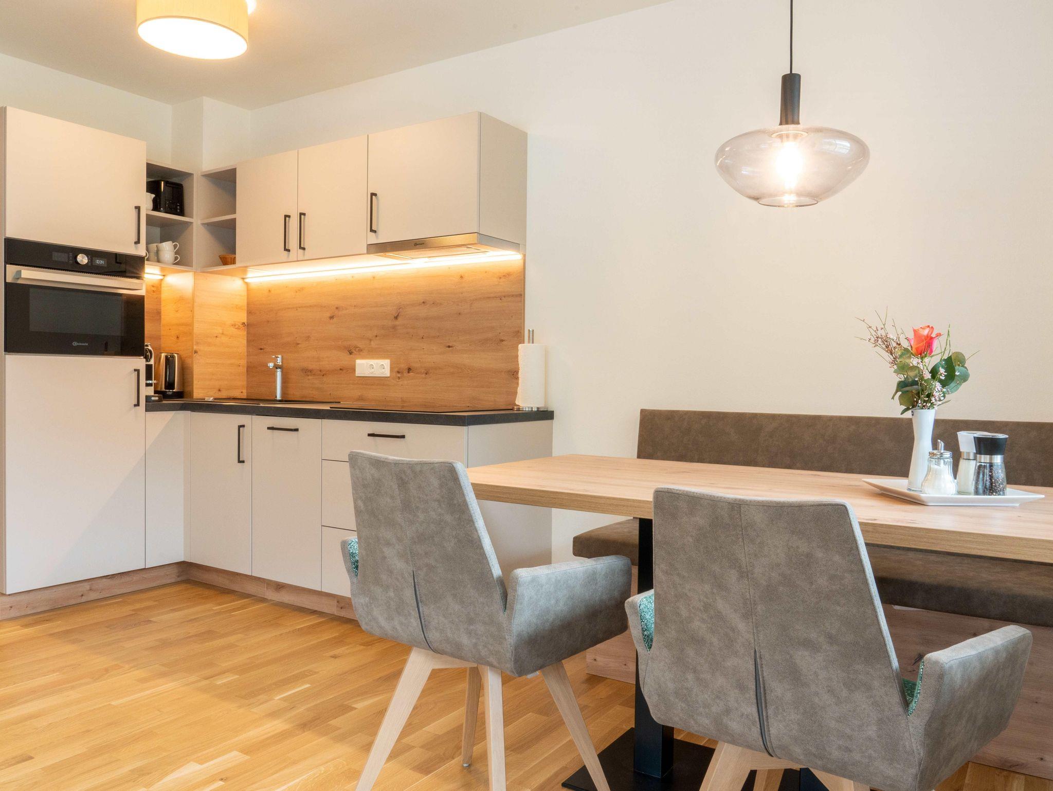 • nagelneuen, topausgestatteten Ferienwohnungen für 1 – 6 Personen mit Wohnküche inkl. „Kitchen-Kit“, 1-2 Schlafzimmern mit hochwertigen „Voglauer“ Betten inkl. Bettwäsche, 1-2 Badezimmern inkl. Handtücher und Haarfön sowie modernen Annehmlichkeiten wie Smart-TV in jedem Zimmer, WLAN, Geschirrspüler, Kühlschrank mit Gefrierfach, Backofen mit Mikrowellenfunktion u.v.m.