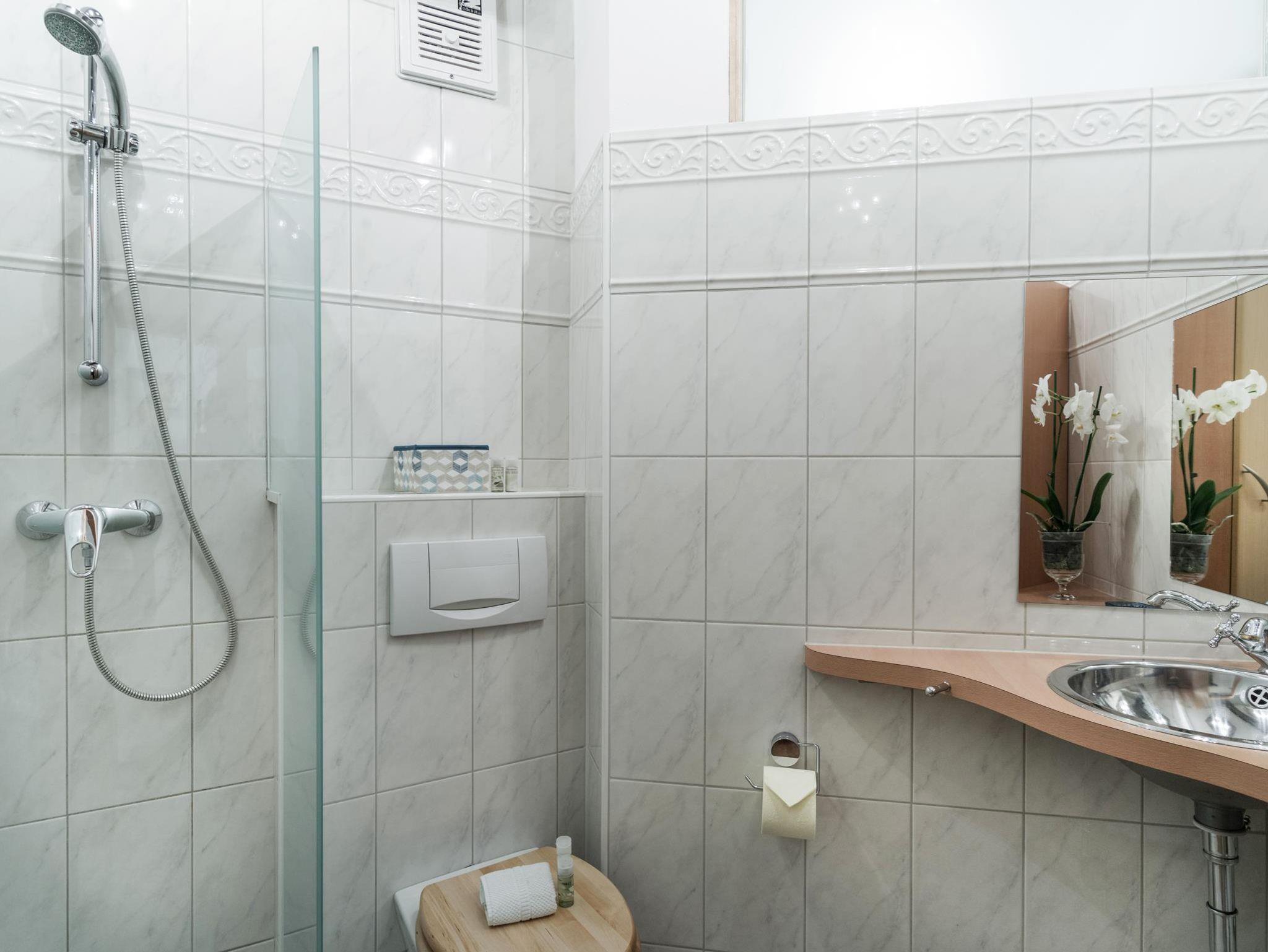 Hochwertiges Appartement (100 qm) mit 3 Schlafzimmern, 2 Bädern, WC mit Dusche & Badewanne sowie Bidet, großem Esszimmer- und Küchenbereich und Wohnzimmer. Terrasse. Das Appartement bietet Platz für 5-9 Personen. Hight-Speed-W-Lan & Flat-TV.