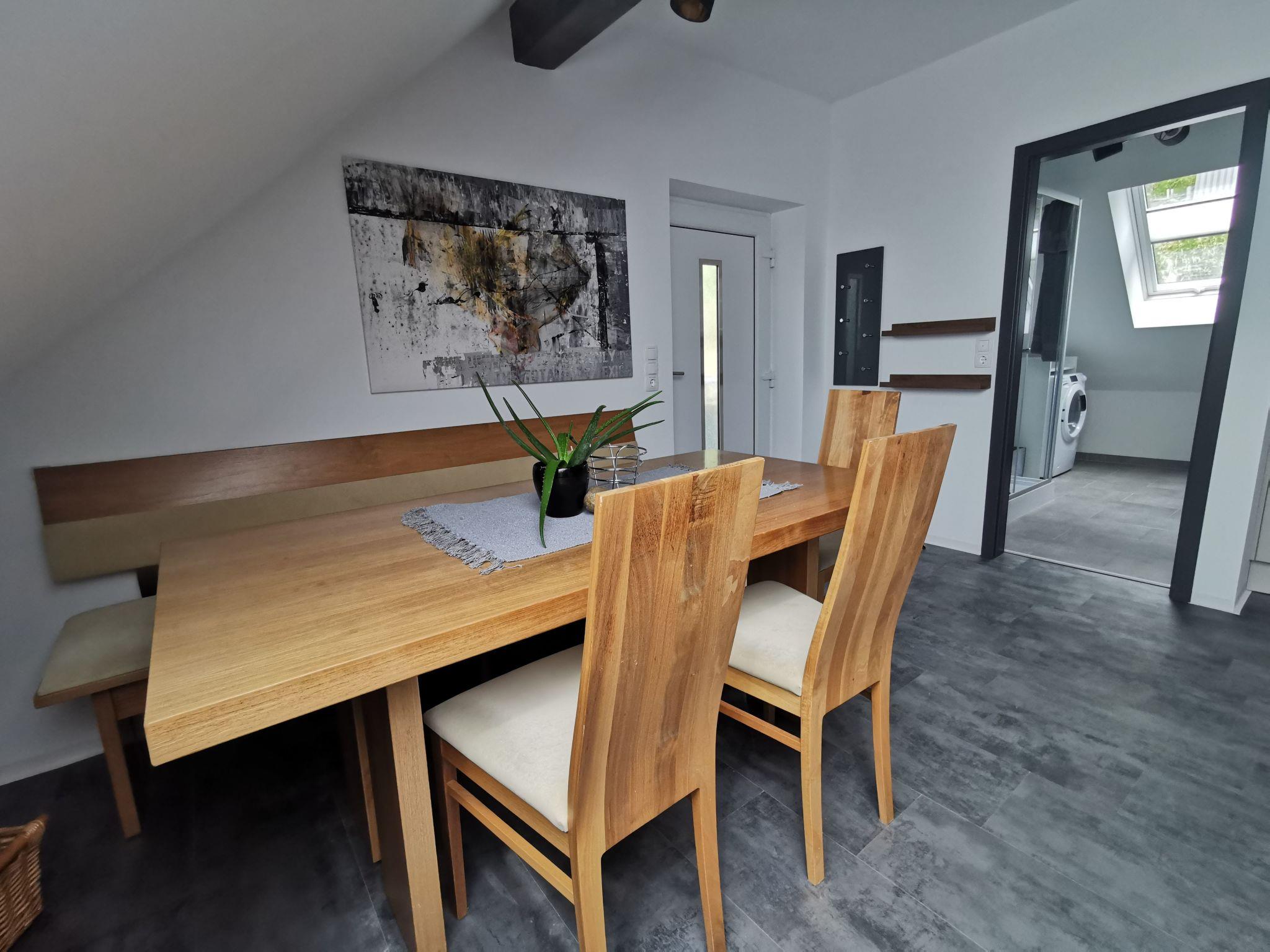 The outdoor area of the detached holiday flat on the first floor is a real highlight. Enjoy the private garden, which is exclusively for your use. The terrace invites you to enjoy extensive breakfasts outdoors or cosy evenings under the stars. Here you can fully enjoy the peace and beauty of nature.