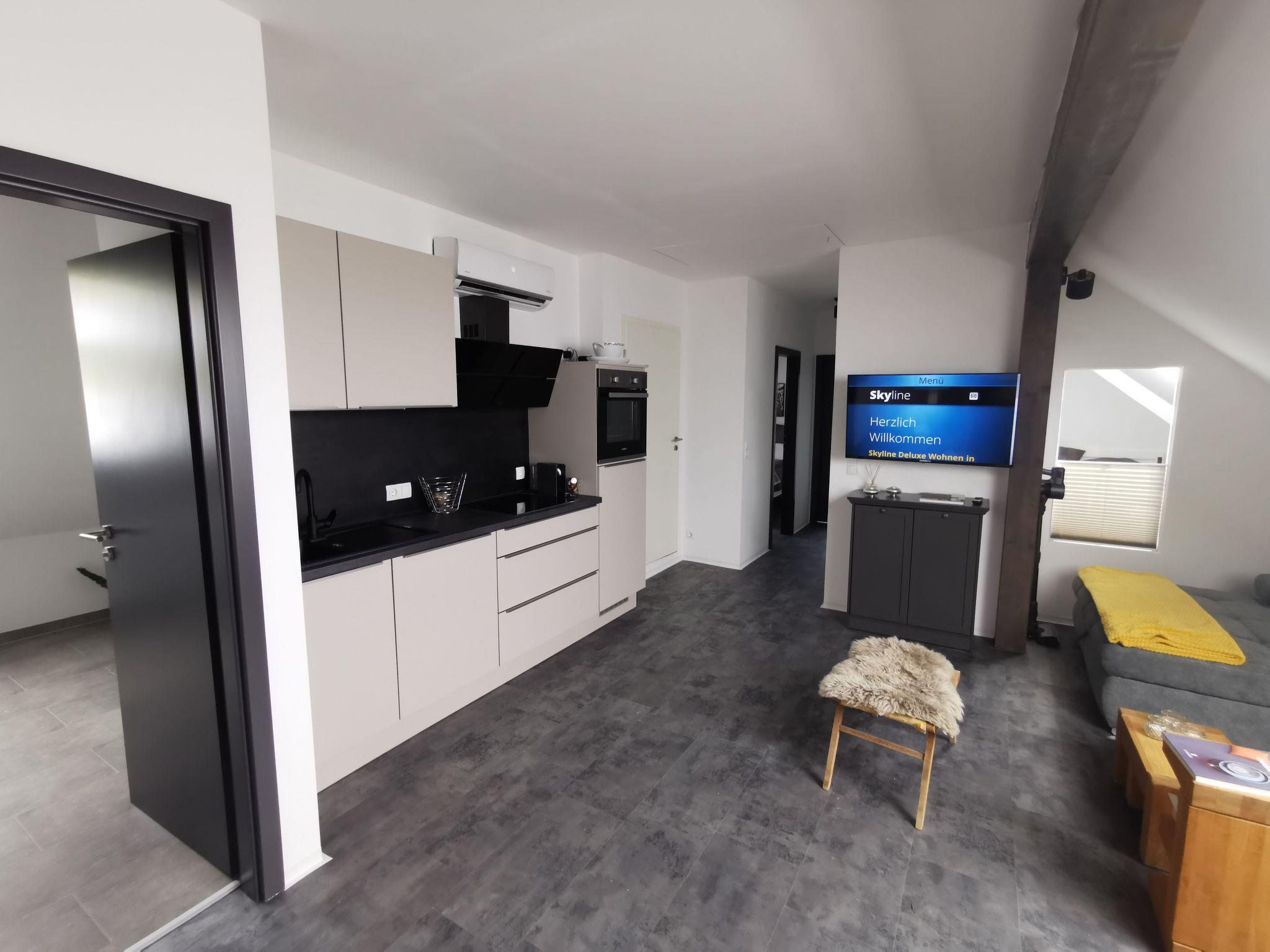 Inside, the flat impresses with every conceivable comfort. There are two cosy bedrooms and a bathroom with shower for you to relax in after an eventful day. Culinary highlights are provided by the fully equipped kitchen with ceramic hob, dishwasher and an espresso pot that no coffee lover should be without. A washing machine and tumble dryer also make your stay easier. On warm days, a fan ensures a pleasant coolness, while air conditioning provides additional comfort in some areas of the flat.