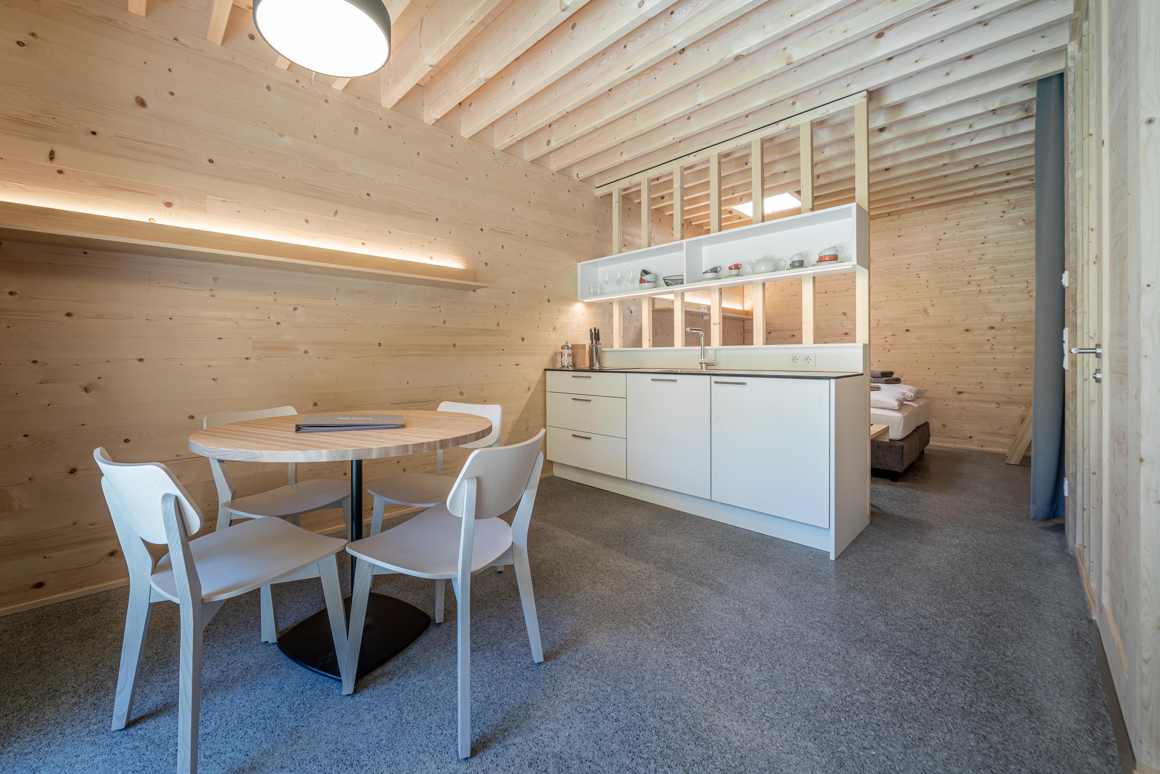 Die Apartments am Camping Dornbirn bieten eine komfortable und zugleich naturnahe Unterkunftsoption für Reisende. Mit vier Schlafplätzen pro Apartment, einer voll ausgestatteten Küchenzeile, die einen Kühlschrank und einen Herd umfasst, sowie mit Dusche und WC, sind die Apartments ideal für Familien oder kleine Gruppen. Die Möglichkeit, sowohl drinnen als auch draußen Sitzgelegenheiten zu nutzen, ermöglicht es den Gästen, die malerische Umgebung in vollen Zügen zu genießen.