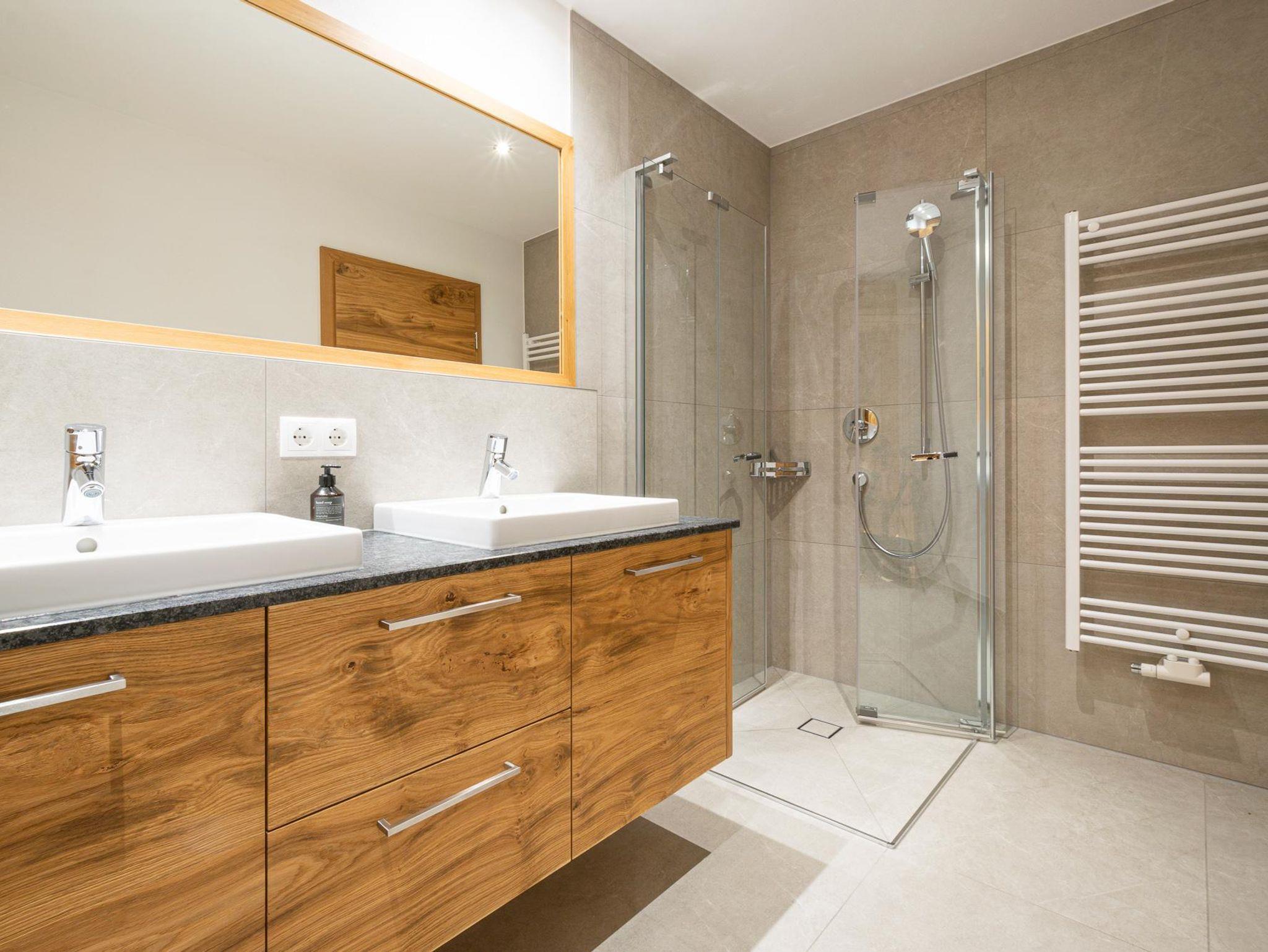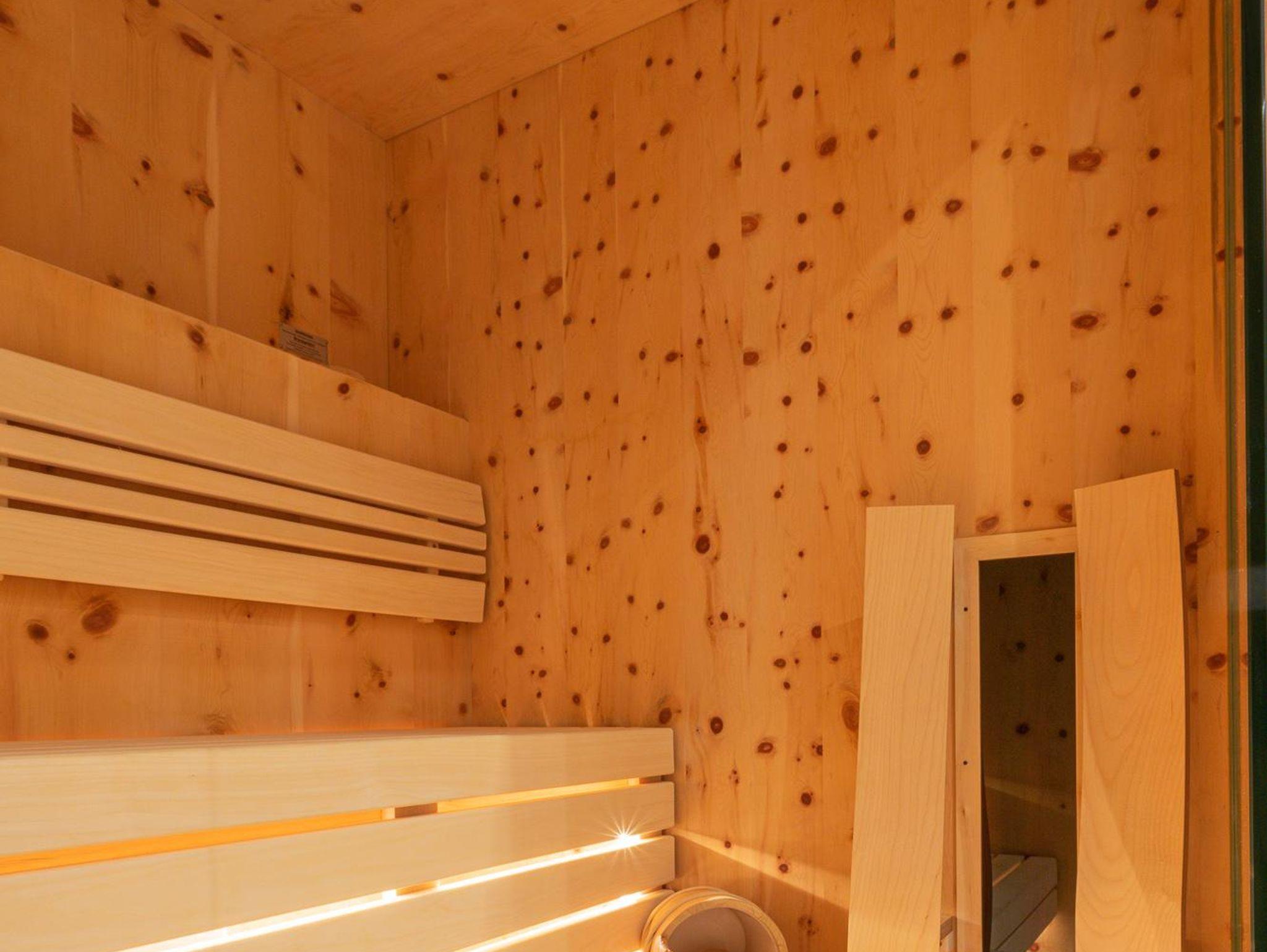 Die private Zirbensauna und Infrarotkabine im Badezimmer bieten entspannende Momente nach einem Spaziergang durch den Schnee – oder nach einem Besuch am Adventmarkt.