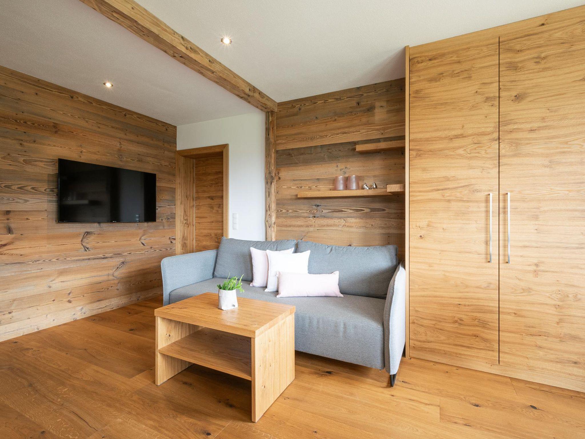 Unser großzügiges Appartement Josef im Nebenhaus des Untersüßguts bietet Platz für 1 bis 6 Personen und überzeugt mit viel Raum zum Wohlfühlen – eigene Sonnenterasse, inklusive privater Zirbensauna und Infrarotkabine für entspannte Stunden.