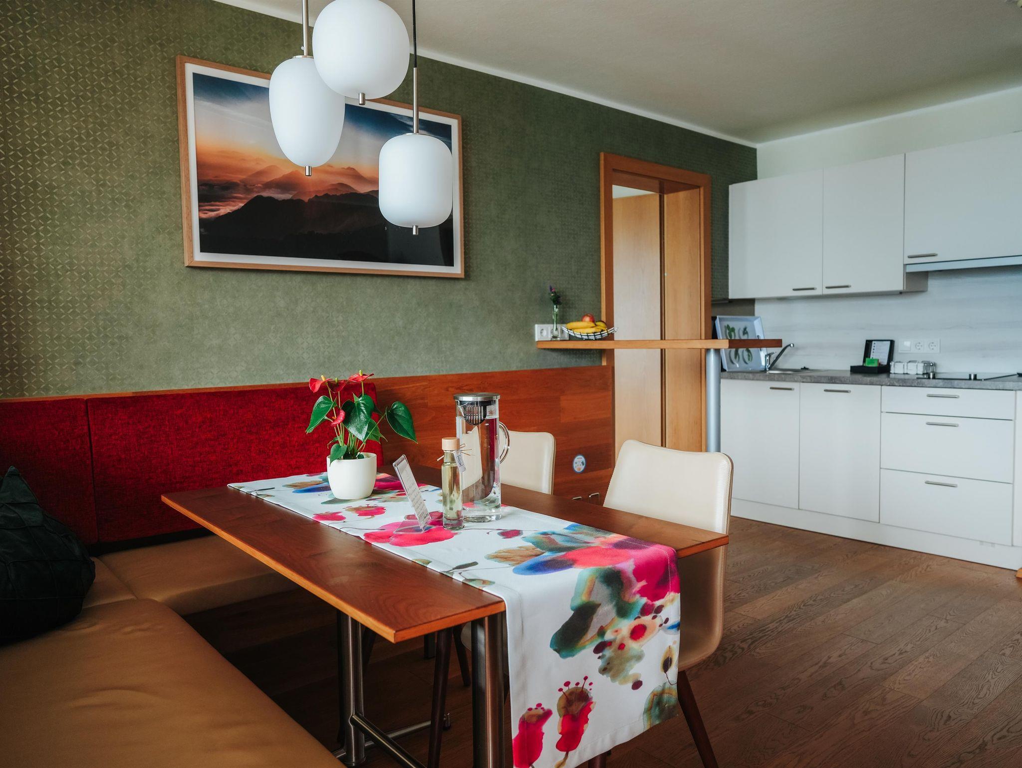 Dieses Apartment verfügt über ein Schlafzimmer mit raumhohen Panoramafenstern, ein Wohnzimmer mit Essbereich, Flat-Screen, Telefon, Stereo-Anlage und zwei qualitativ hochwertige Couch-Betten, einen Vorraum mit umfassend ausgestatteter Küche sowie ein Badezimmer mit Dusche und WC und einer großen südseitigen Terrasse.