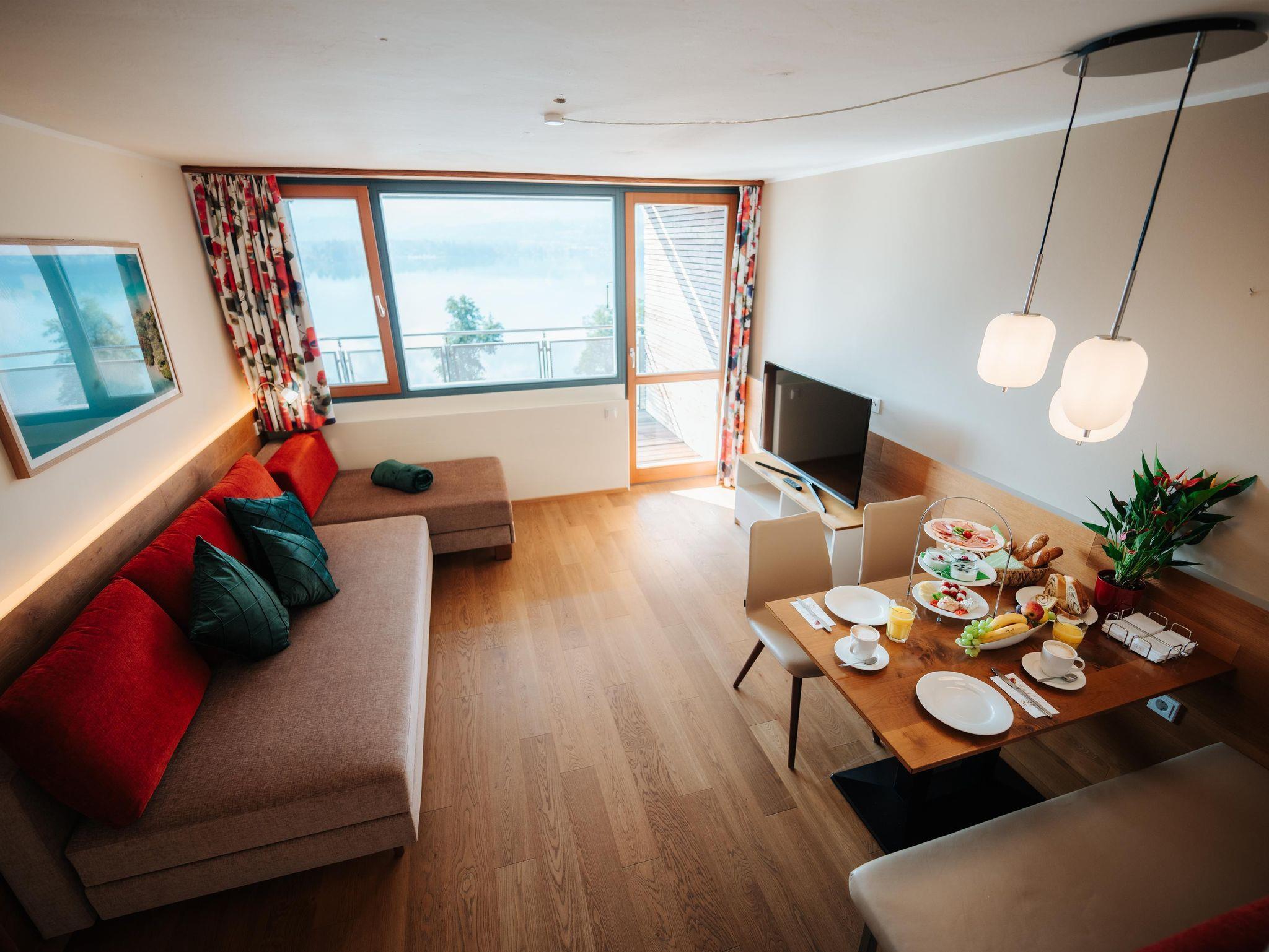Aus jeder unserer gemütlichen Ferienwohnungen bietet sich ein fantastischer Blick auf den See. Alle Wohnungen verfügen über eine große Terrasse mit Seeblick und wurden kürzlich, ebenso wie unser Wellnessbereich neu gestaltet. Auf Wunsch können Sie eine Frühstücksbox bestellen. Auf unserer ruhig gelegenen Liegewiese erwarten Sie eigens für Sie reservierte Liegen und Sonnenschirme. Ein Paradies für Ruhesuchende und Familien inmitten grüner Wiesen und Felder in unserem exklusiven Familien-Betrieb.Unser neuer Wellness-Bereich steht ihnen jeweils exklusiv zur Verfügung!