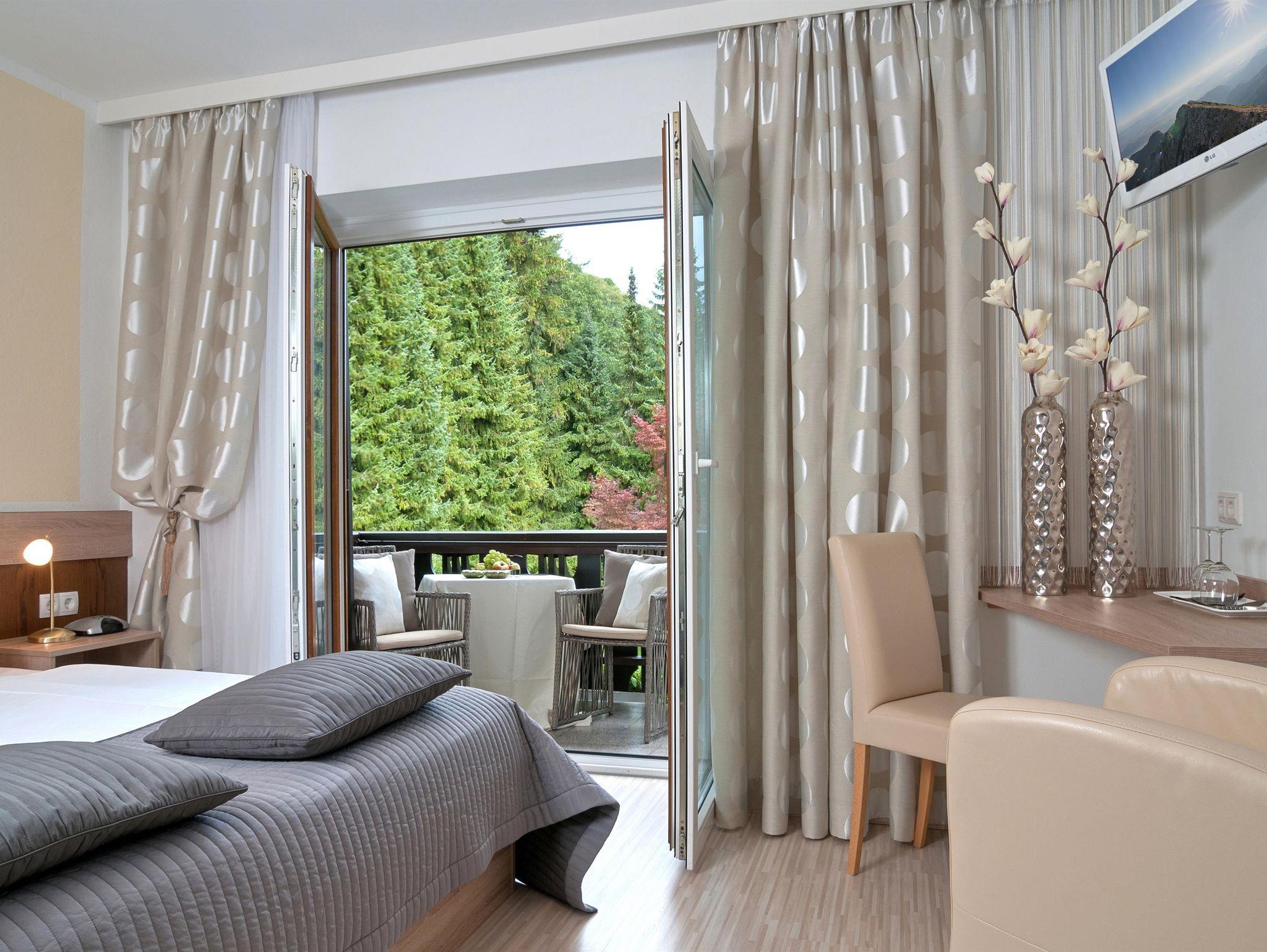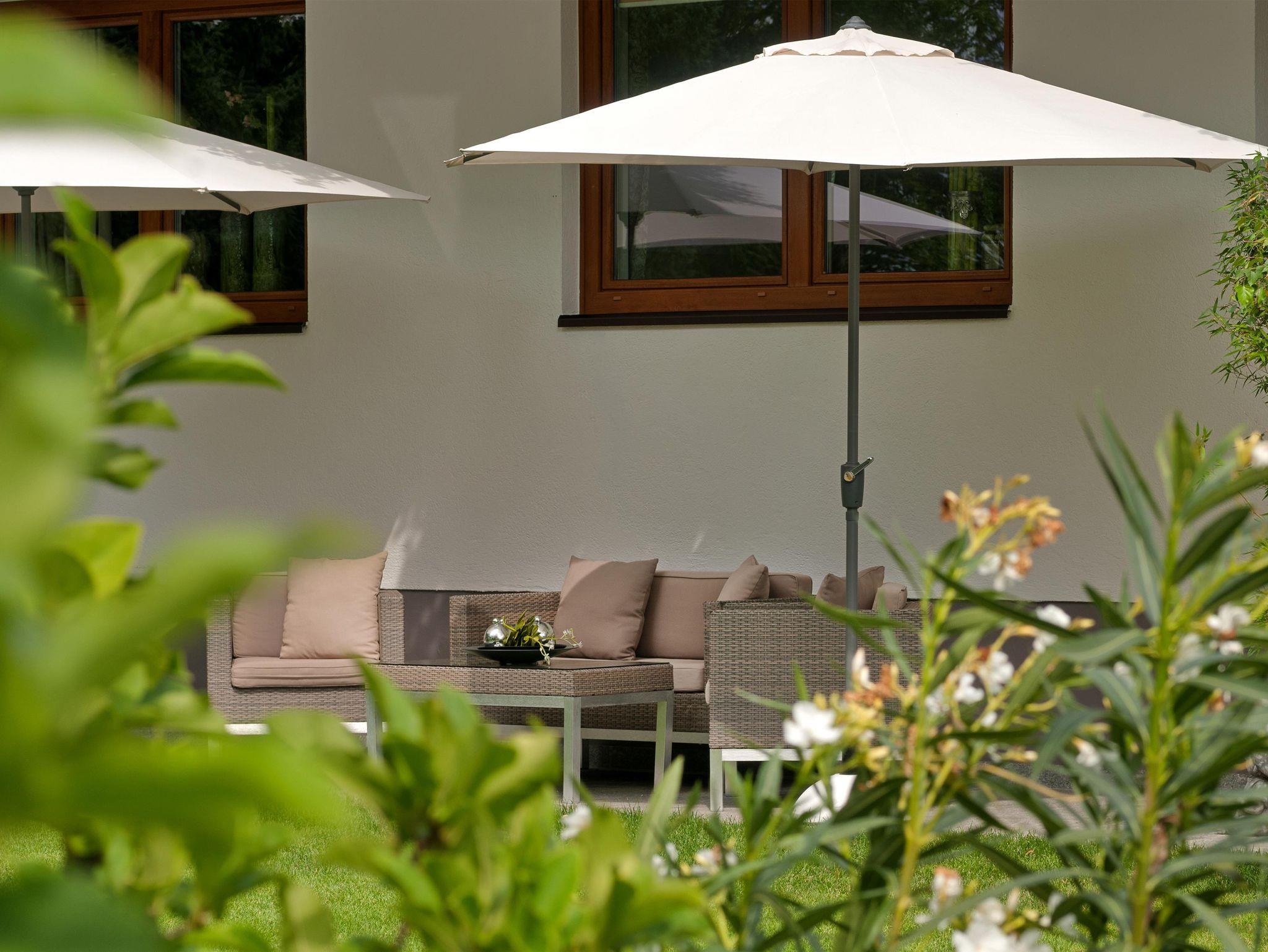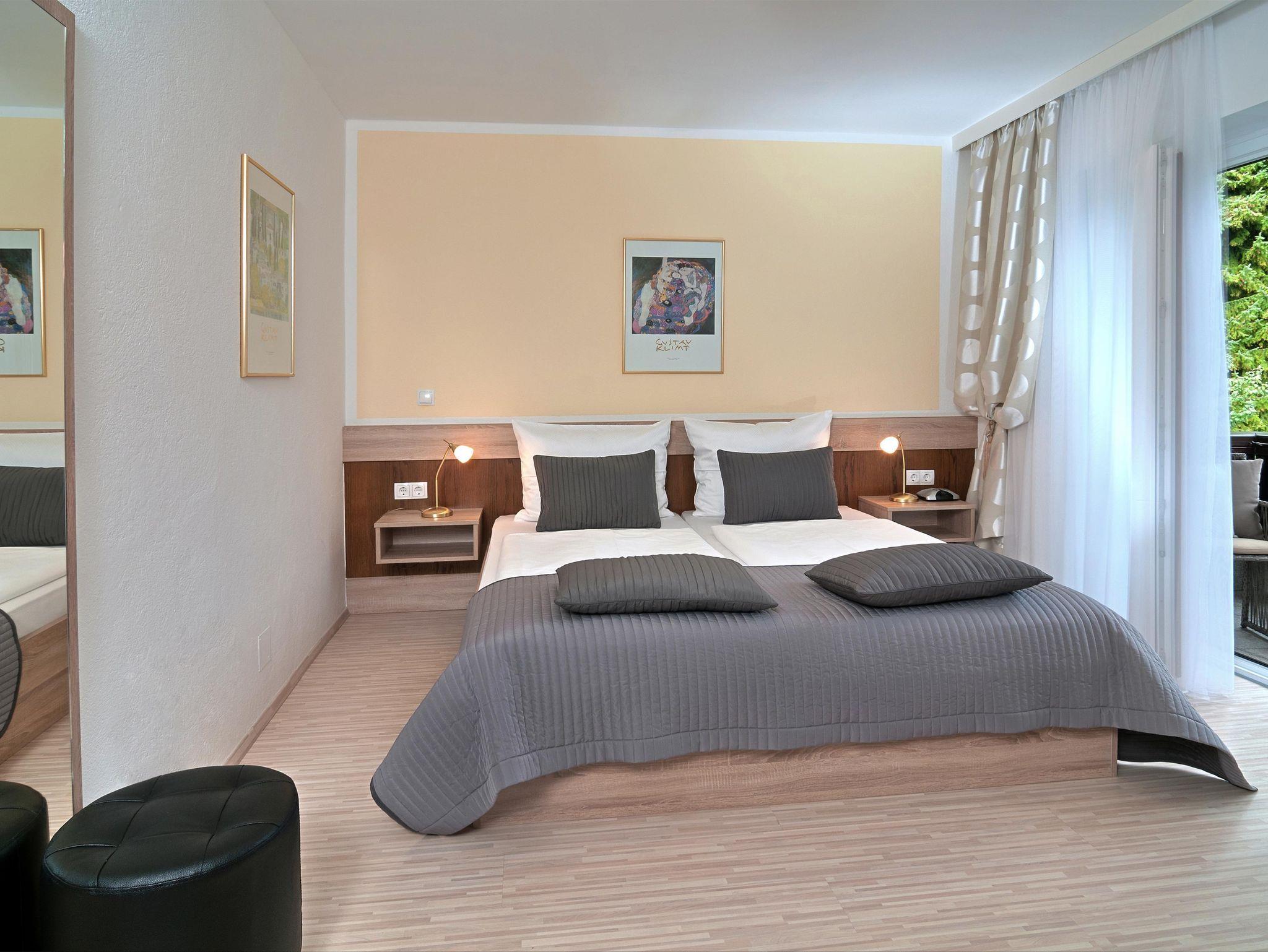 Die modernen Zimmer verfügen alle über eigenen Balkon mit Blick auf den ruhigen Garten.