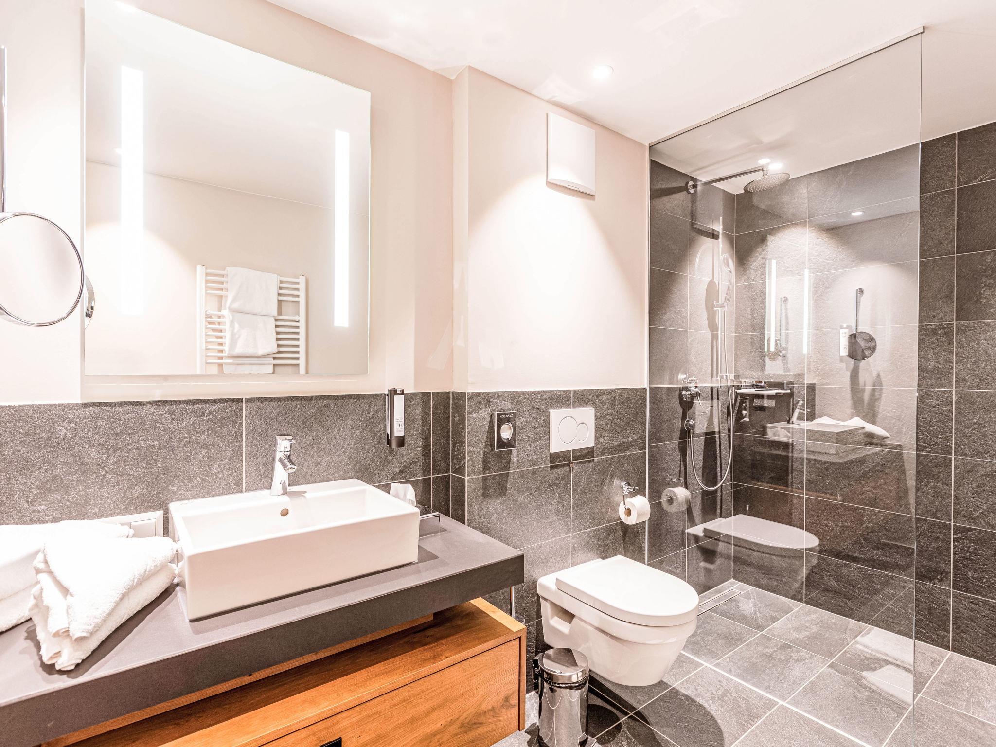 "Premium Penthouse mit 4 Schlafzimmern", 5-room penthouse 191 m2. Bright, modern and tasteful furnishings: living/sleeping room with 1 double sofabed, dining table and satellite TV (flat screen). 4 double bedrooms. Open kitchen (oven, dishwasher, 4 ceramic glass hob hotplates, toaster, kettle, microwave, electric coffee machine, Capsules for coffee machine (Nespresso) extra). 2 showers/WC. Heating. Balcony. Balcony furniture. Beautiful view of the mountains. Facilities: hair dryer. Internet (WiFi, free). Please note: non-smokers only.