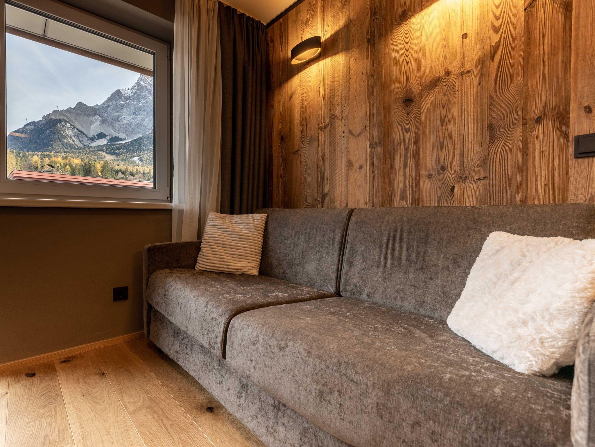 Zugspitz Residences liegt im Herzen von Ehrwald, direkt neben dem Golfplatz und in unmittelbarer Nähe des weit bekannten Ehrwalder Schigebiets. Dieser einzigartige, familienfreundliche Topspot garantiert ganzjährig Sport- und Freizeiterlebnisse der besonderen Art. Die bequem vom Haus aus zu erreichende Zugspitz Arena mit 56 Bergbahnen bietet auf 142 Pistenkilometern abwechslungsreiches Skivergnügen in allen Schwierigkeitsgraden! Des Weiteren sind eine problemlose Anbindung (Flughafen Innsbruck, 75 km - Flughafen München (DE), 147 km - Flughafen Salzburg, 196 km - Flughafen Zürich (CH), 200 km) und diverse Ausflugsziele (Bayrische Königsschlösser, Seefeld, Ötzi Dorf, Swarovski Kristallwelten, Innsbruck uvm.) gegeben. Parkmöglichkeiten sind rund um die Residenz vorhanden. Für Körper und Seele besteht im Erdgeschoß ein exklusiver Wellnessbereich mit Indoor-Infinity-Pool, finnischer Sauna, Bio-Sauna sowie Infrarotkabine, Regenerationsdusche und einem Ruheraum für totale Entspannung. Der Außenbereich animiert im Sommer zum Relaxen in der Sonne und im Winter ist dort Erfrischung nach einem ausgiebigen Saunagang möglich.