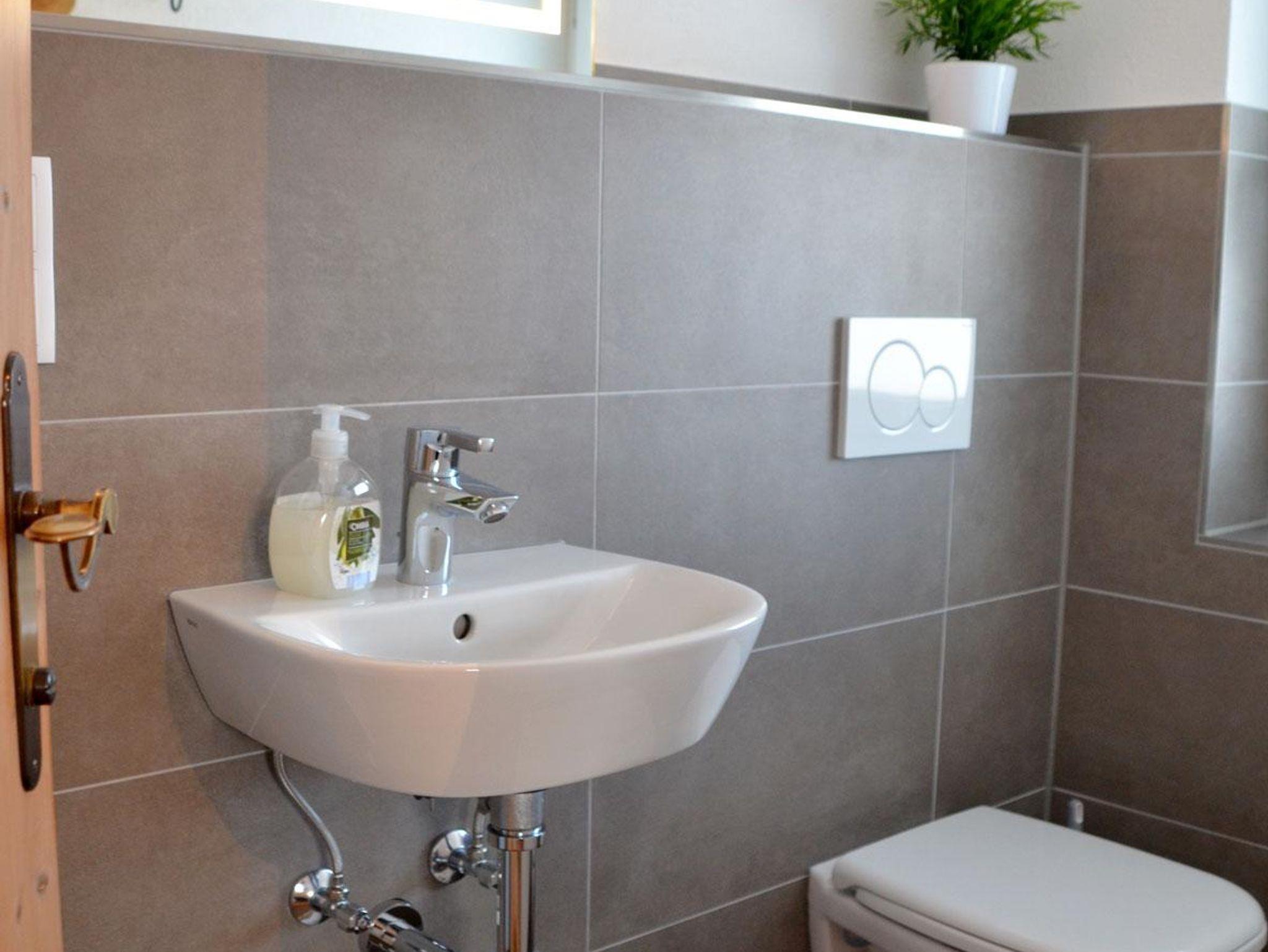Zwei Bäder mit 1 Dusche sowie 2 Toiletten und 2 Waschbecken