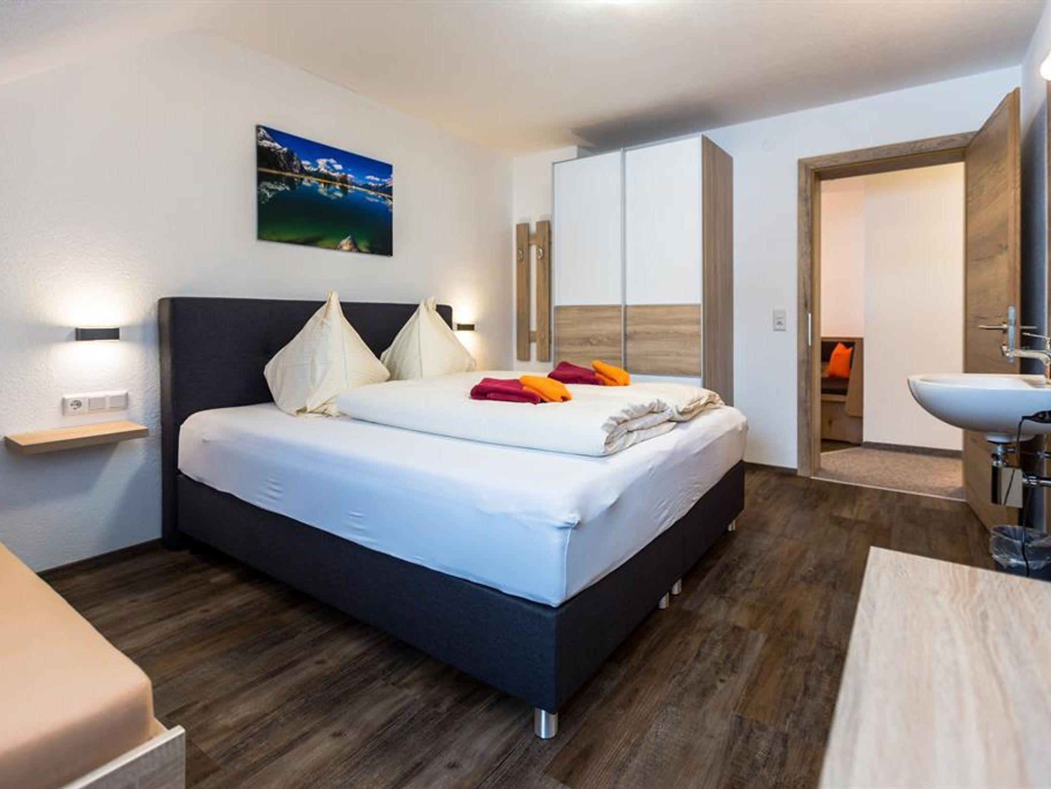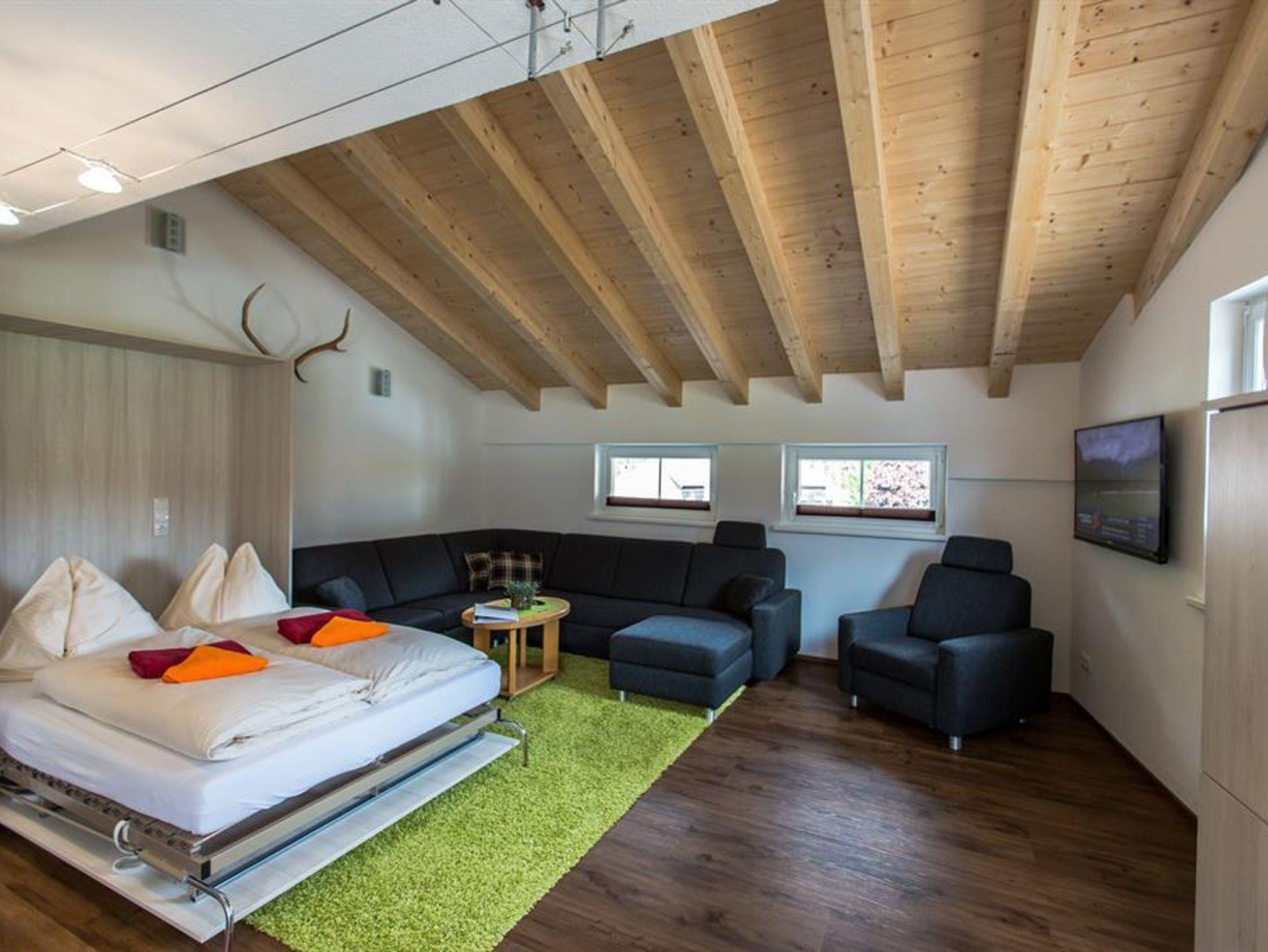 Neu eingerichtete Ferienwohnung Wetterstein mit 31m2 Separates Schlafzimmer mit Doppelbett (Bettwäsche vorhanden), Flat-TV Wohn-Küche mit gemütlicher Schlafcouch und Flat-TV. Die Küche ist komplett eingerichtete Küche mit Elektroherd inkl. Backrohr, Kaffeemaschine (Tassimo), Mikrowelle, Toaster, Tisch- und Kochgeschirr DU/WC bei Schlafzimmer (Frotteewäsche vorhanden) Internet via W-LAN