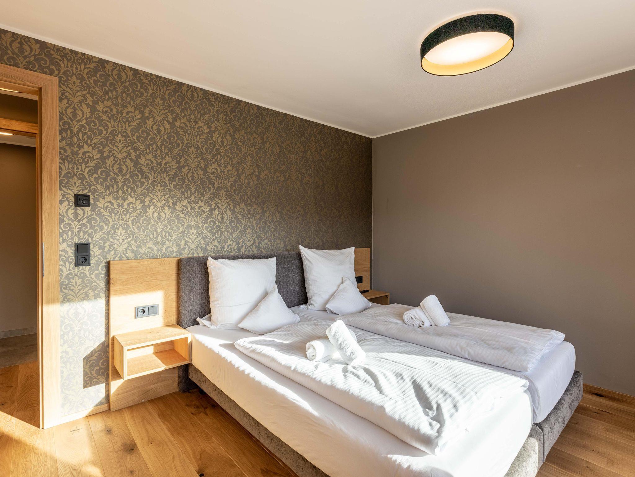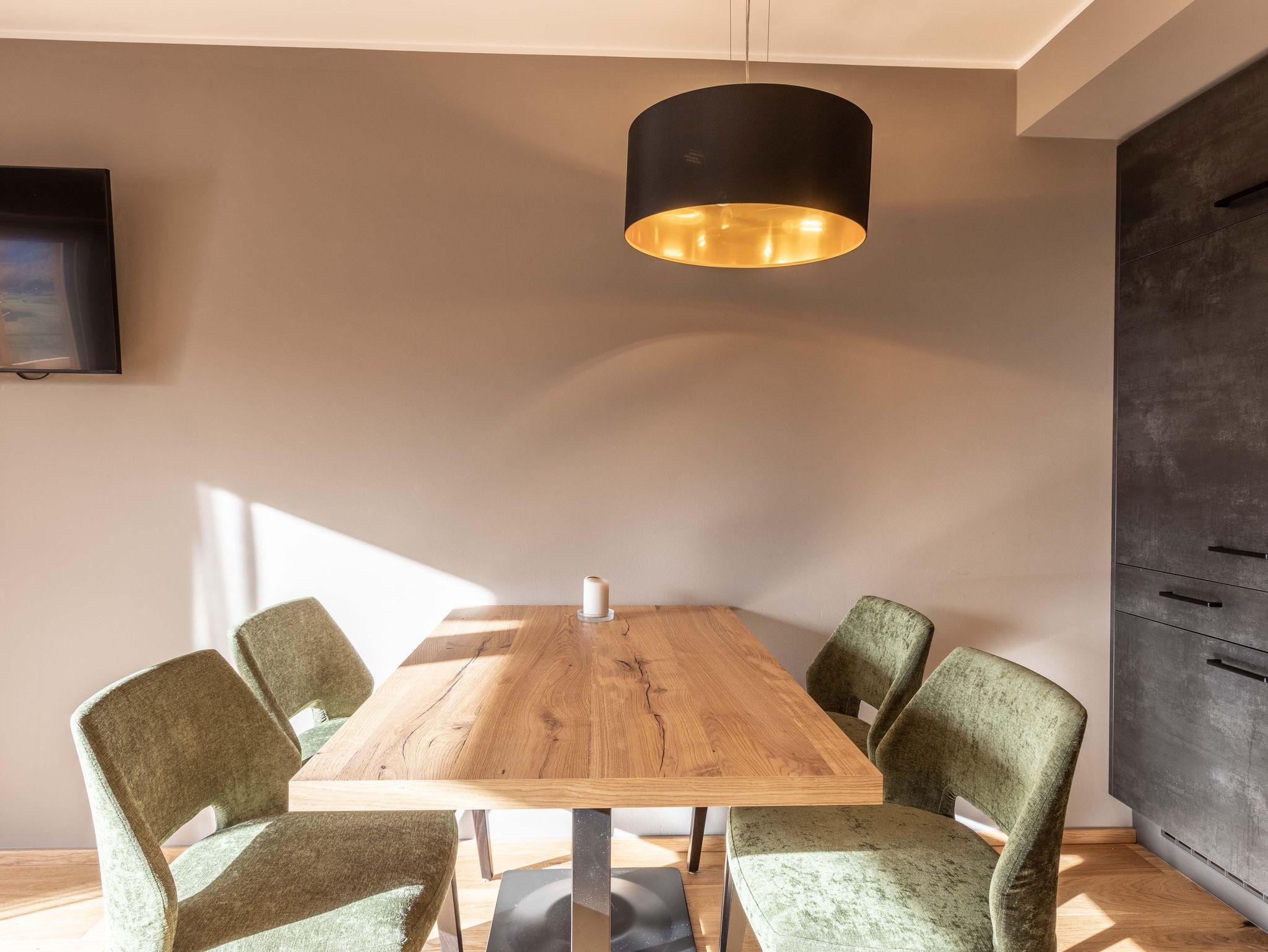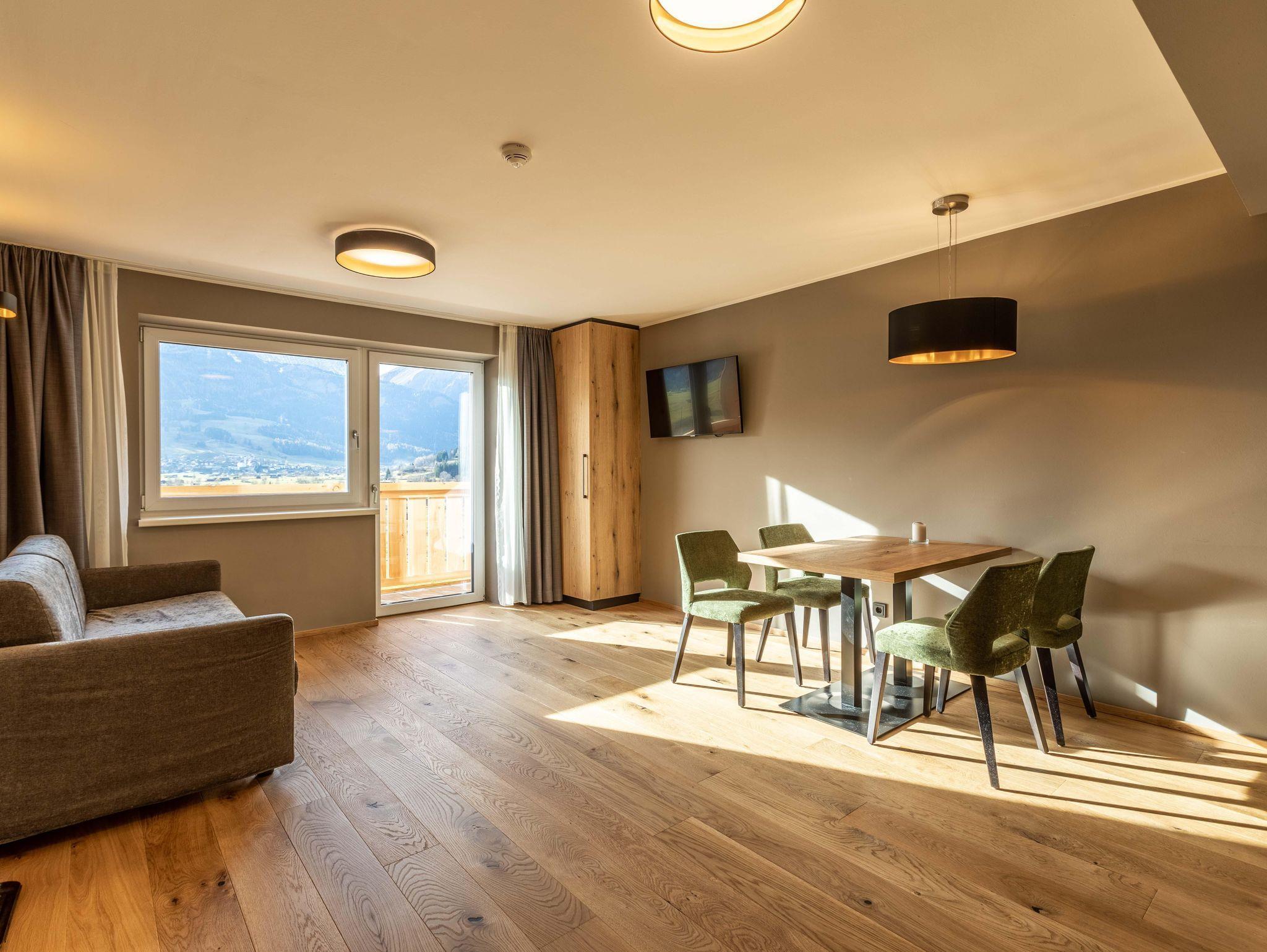 Das Apartment hat Platz für 4 Personen und bietet Wohnküche, Schlafzimmer (Boxspringbett und Balkonzugang), Bad und separates WC. Der Eingangsbereich, mit Garderobe, führt direkt in die Wohnküche mit Essbereich (Balkongzugang), welcher mit Esstisch, TV, Kleiderschrank und einem Ausziehsofa aufwartet. Die angrenzende Küche ist mit Küchengeräten, Kühl-Gefrierkombi sowie Nespresso Kaffeemaschine ausgestattet und verfügt außerdem über Küchengeschirr inklusive Töpfe und Pfannen.