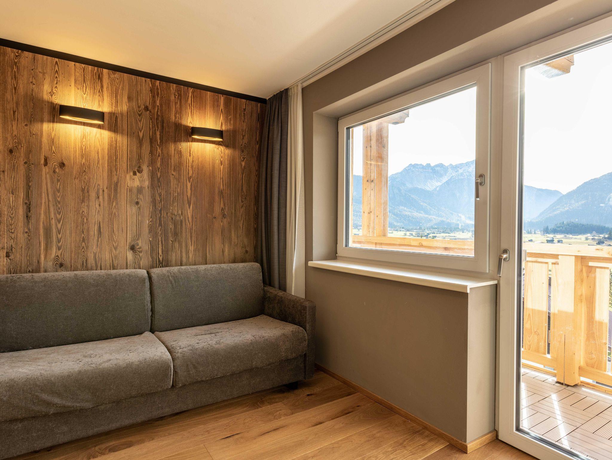 Zugspitz Residences liegt im Herzen von Ehrwald, direkt neben dem Golfplatz und in unmittelbarer Nähe des weit bekannten Ehrwalder Schigebiets. Dieser einzigartige, familienfreundliche Topspot garantiert ganzjährig Sport- und Freizeiterlebnisse der besonderen Art. Die bequem vom Haus aus zu erreichende Zugspitz Arena mit 56 Bergbahnen bietet auf 142 Pistenkilometern abwechslungsreiches Skivergnügen in allen Schwierigkeitsgraden! Des Weiteren sind eine problemlose Anbindung (Flughafen Innsbruck, 75 km - Flughafen München (DE), 147 km - Flughafen Salzburg, 196 km - Flughafen Zürich (CH), 200 km) und diverse Ausflugsziele (Bayrische Königsschlösser, Seefeld, Ötzi Dorf, Swarovski Kristallwelten, Innsbruck uvm.) gegeben. Parkmöglichkeiten sind rund um die Residenz vorhanden. Für Körper und Seele besteht im Erdgeschoß ein exklusiver Wellnessbereich mit Indoor-Infinity-Pool, finnischer Sauna, Bio-Sauna sowie Infrarotkabine, Regenerationsdusche und einem Ruheraum für totale Entspannung. Der Außenbereich animiert im Sommer zum Relaxen in der Sonne und im Winter ist dort Erfrischung nach einem ausgiebigen Saunagang möglich.