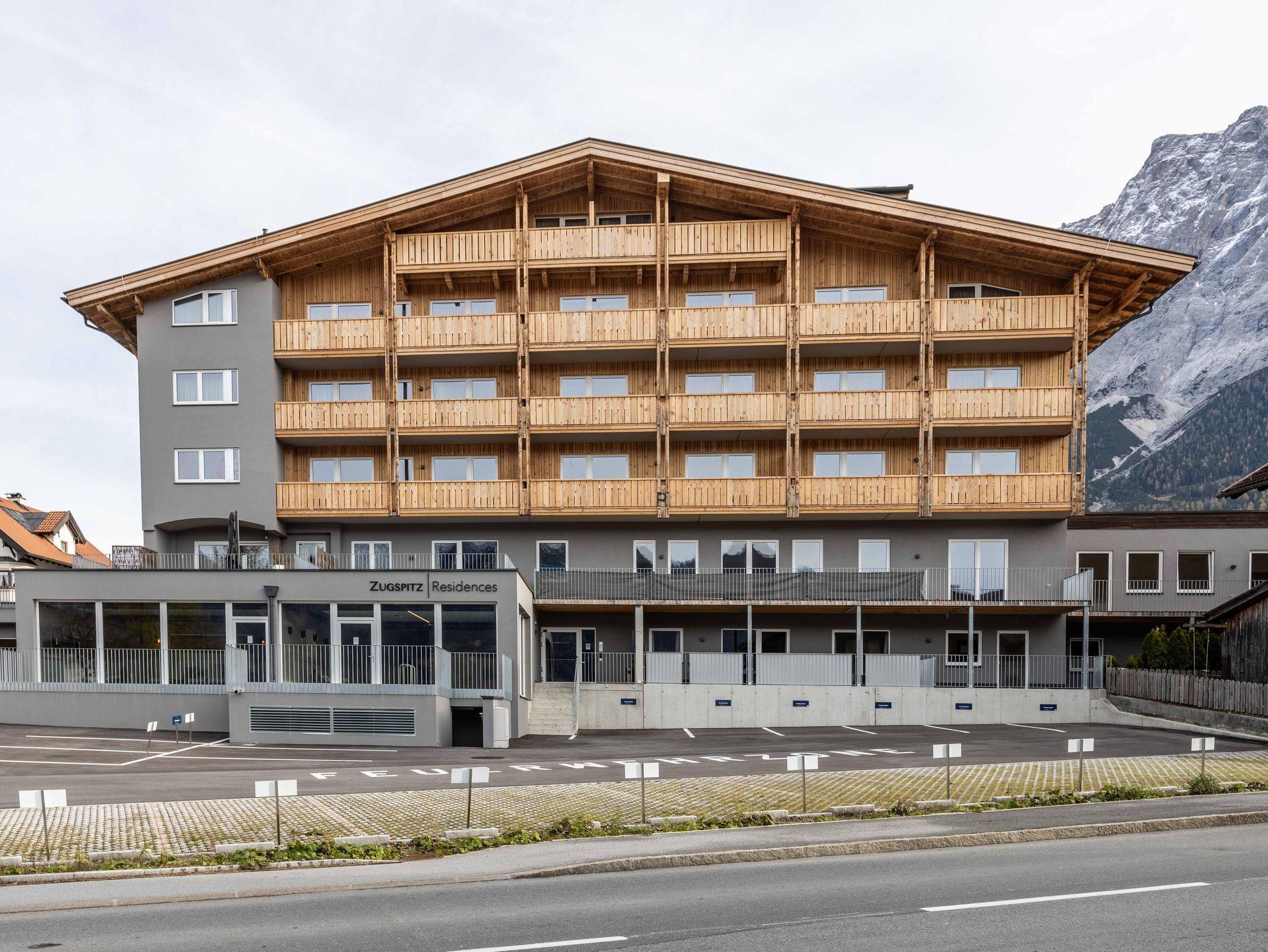 Zugspitz Residences liegt im Herzen von Ehrwald, direkt neben dem Golfplatz und in unmittelbarer Nähe des weit bekannten Ehrwalder Schigebiets. Dieser einzigartige, familienfreundliche Topspot garantiert ganzjährig Sport- und Freizeiterlebnisse der besonderen Art. Die bequem vom Haus aus zu erreichende Zugspitz Arena mit 56 Bergbahnen bietet auf 142 Pistenkilometern abwechslungsreiches Skivergnügen in allen Schwierigkeitsgraden! Des Weiteren sind eine problemlose Anbindung (Flughafen Innsbruck, 75 km - Flughafen München (DE), 147 km - Flughafen Salzburg, 196 km - Flughafen Zürich (CH), 200 km) und diverse Ausflugsziele (Bayrische Königsschlösser, Seefeld, Ötzi Dorf, Swarovski Kristallwelten, Innsbruck uvm.) gegeben. Parkmöglichkeiten sind rund um die Residenz vorhanden. Für Körper und Seele besteht im Erdgeschoß ein exklusiver Wellnessbereich mit Indoor-Infinity-Pool, finnischer Sauna, Bio-Sauna sowie Infrarotkabine, Regenerationsdusche und einem Ruheraum für totale Entspannung. Der Außenbereich animiert im Sommer zum Relaxen in der Sonne und im Winter ist dort Erfrischung nach einem ausgiebigen Saunagang möglich.