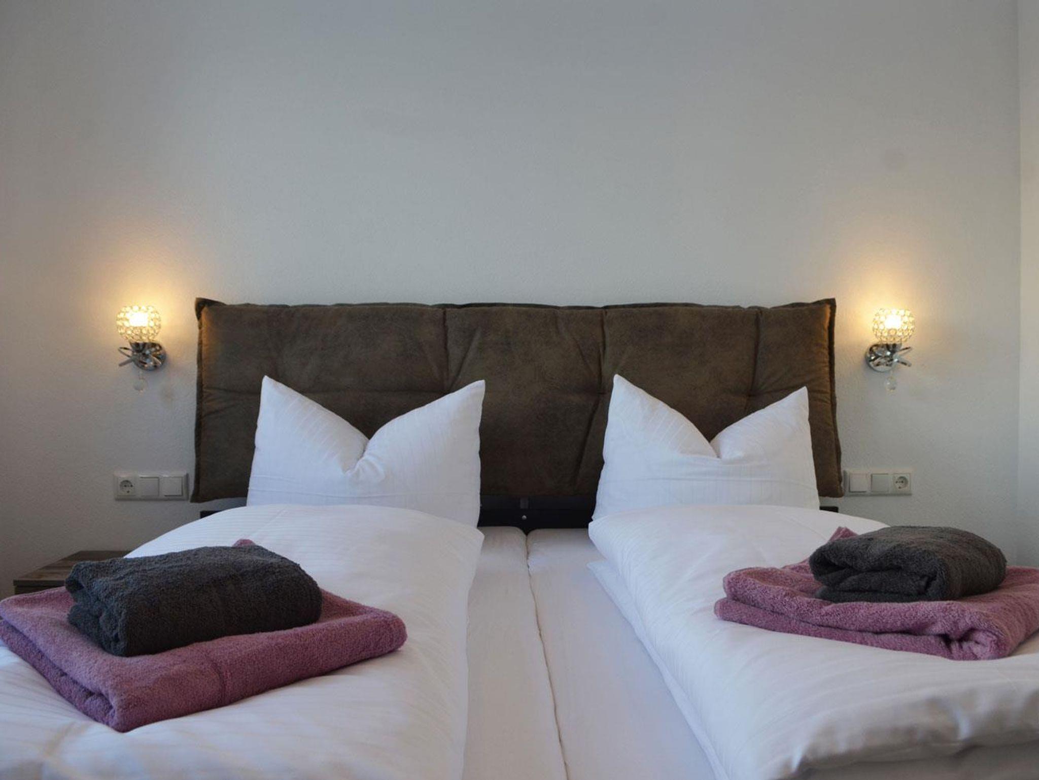 Die Wohnung gliedert sich in zwei getrennte Schlafzimmer, einem Wohnraum mit Küche,