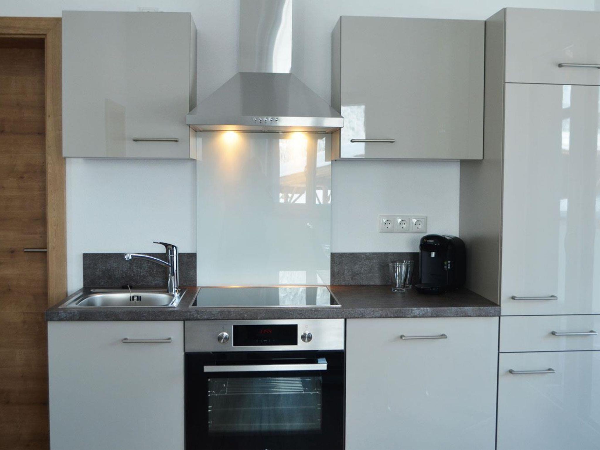 einem Induktionskochfeld, einem Backrohr, Geschirrspüler und einer Kaffeemaschine.