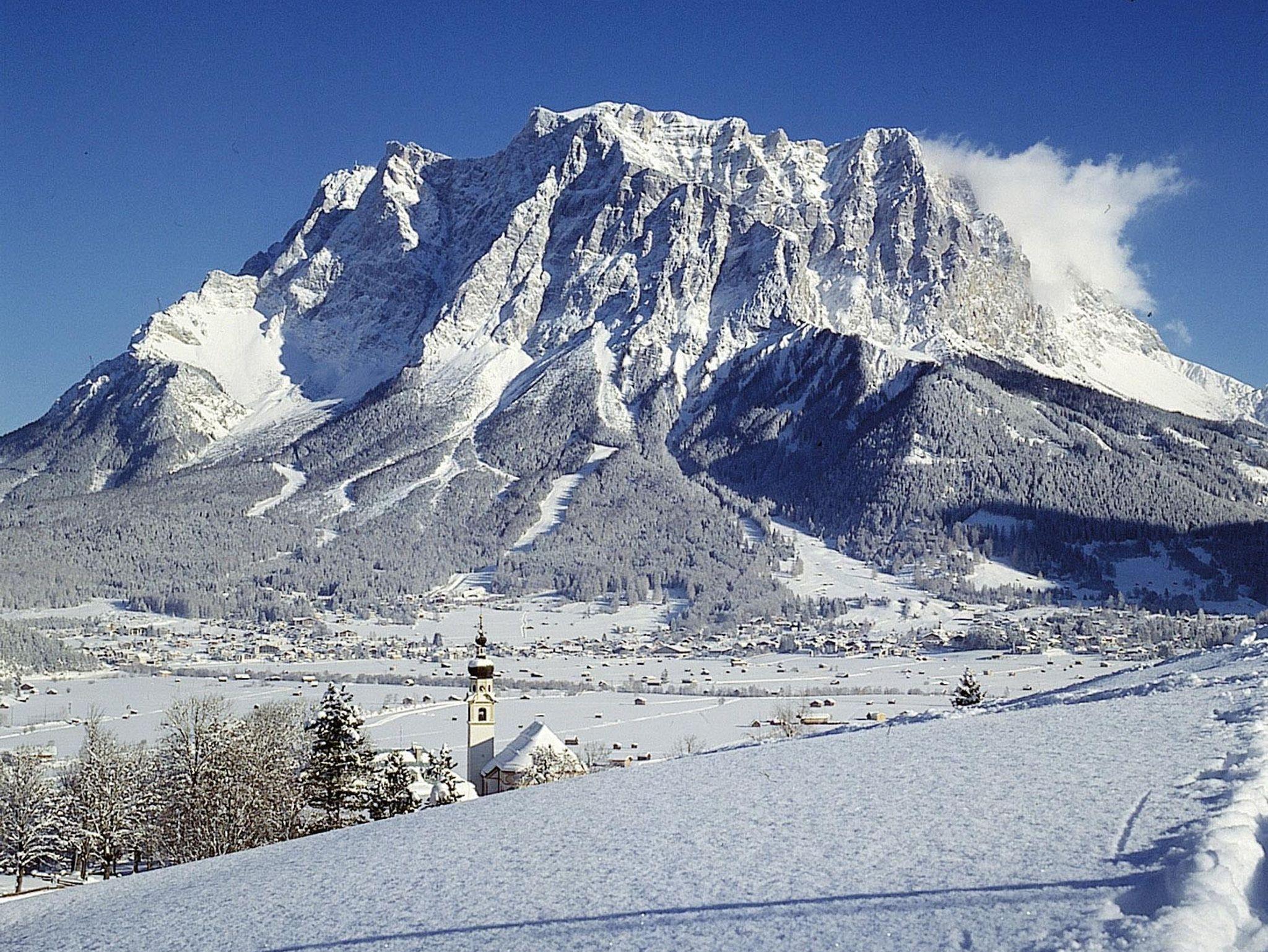 Das Appartementhaus „Zugspitzappartements“ befindet sich in ruhiger Lage mit freiem Blick auf die umliegenden Berge.