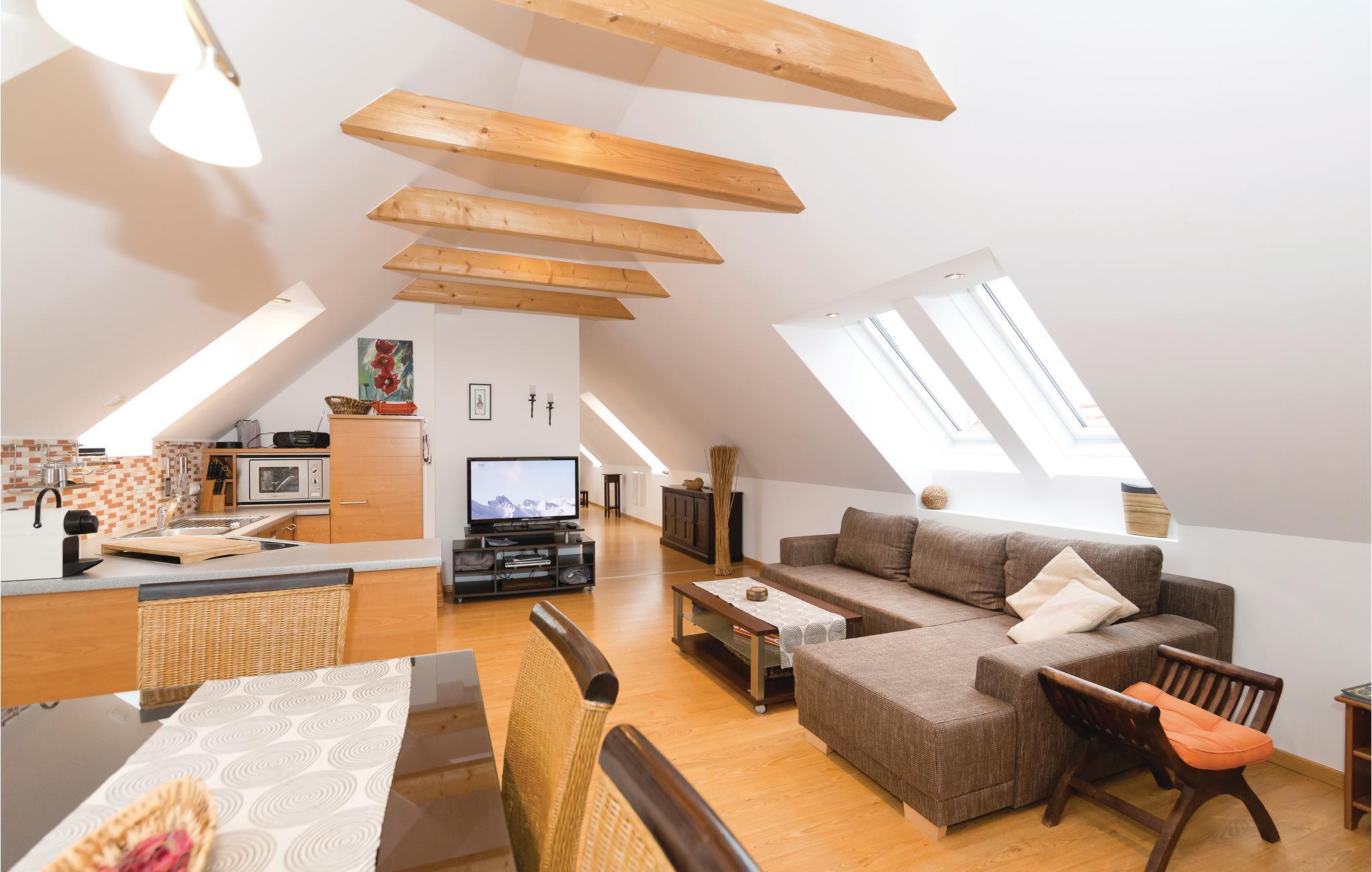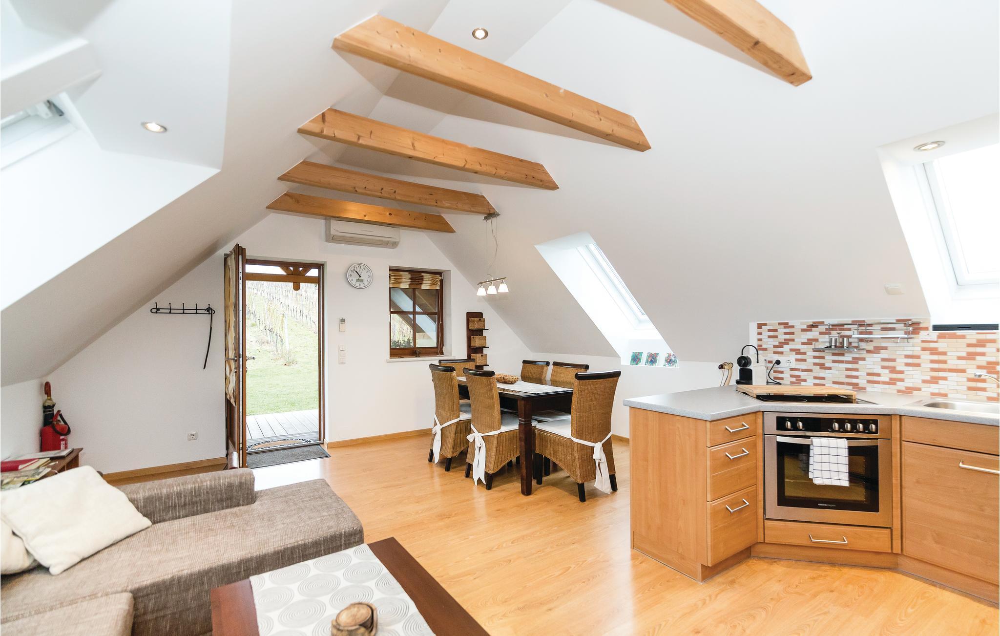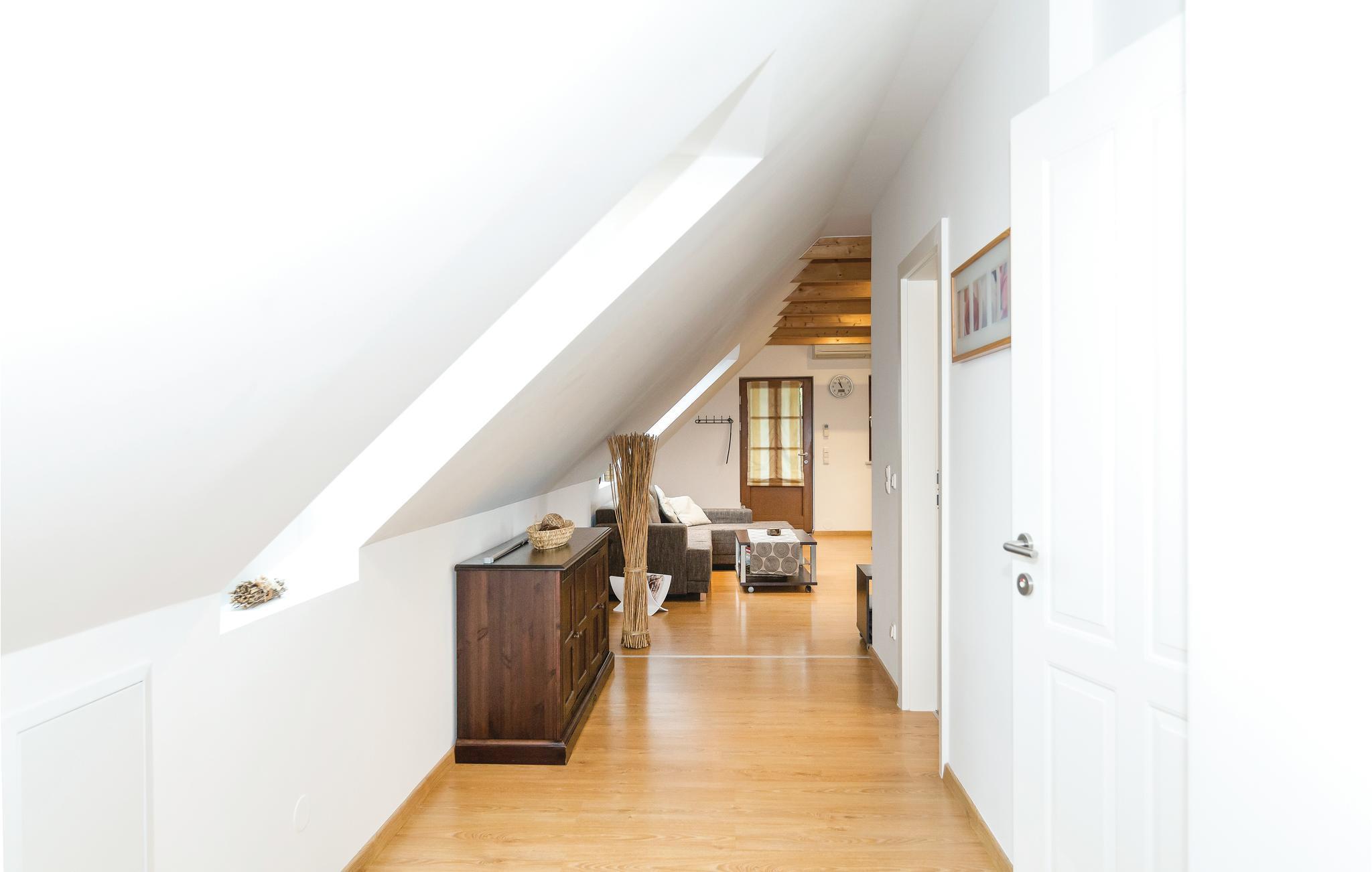 Bo i Burgenland, regionen der er rig på af gastronomiske specialiteter, i denne taglejlighed der er luksuøst og moderne indrettet. Fra jeres private indgang, kommer I ind til de højloftede rum, som danner skønne rammer om jeres behagelige ferie. Badeværelset er ren luksus, soveværelserne dejligt lyse og med bekvemme senge. Huset ligger i skønne omgivelser langs Hummergraben ikke langt fra "Grenzlandkeller", en restaurant nær den østrigske grænse hvor I kan smage lokale retter og glimrende vine fra omgivelserne. I kan leje cykler af husets ejer. I de omliggende kurbade kan I tilbringe timer fulde af wellness for krop og sjæl og bagefter nyde at slappe af hjemme i jeres lejlighed.